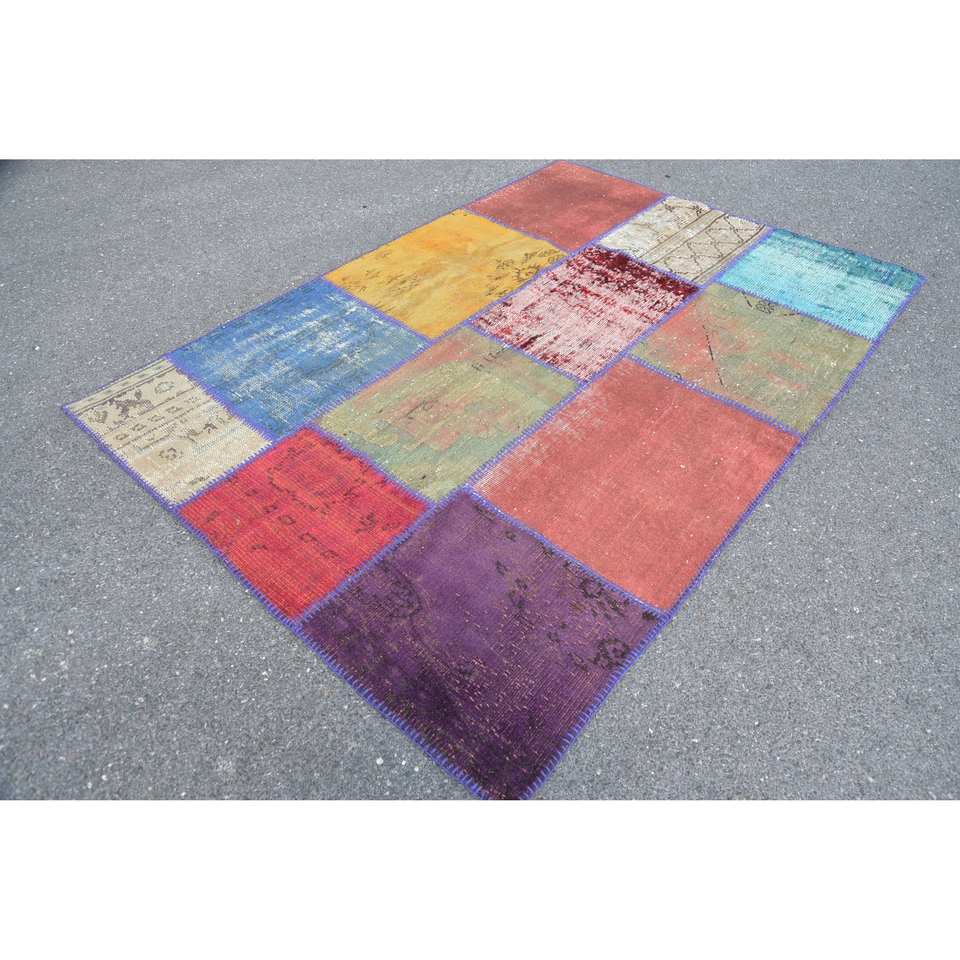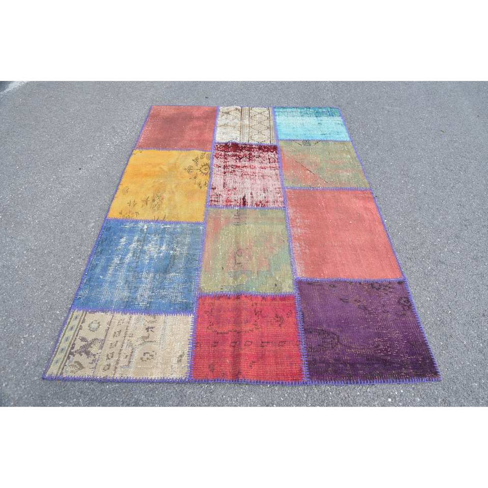 Vintage Turkish Classic Bohemian Wool Rug 4.8 X 6.6 ft Large Area Patchwork Rectangle Design for Room or Bedside Decor