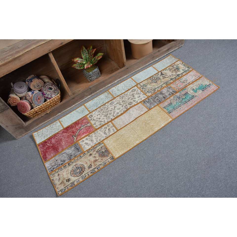 พรมปูพื้นสไตล์ตุรกีโบราณ2ชิ้น X 4,9ft สีเบจผ้าปะต่อผ้าวูลยางวิสคอสทรงสี่เหลี่ยมผืนผ้าขนาดใหญ่สำหรับตกแต่งห้อง