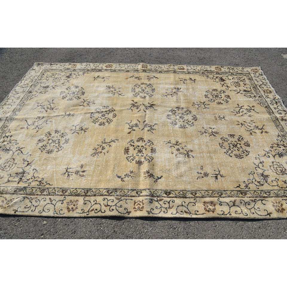 พรมขนสัตว์หัตถกรรมสไตล์ตุรกีวินเทจลายดอกไม้สีเบจสำหรับพื้นที่ขนาดใหญ่6,8x9,9ฟุตห้องรับประทานอาหารผ้าปะต่อสี่เหลี่ยม