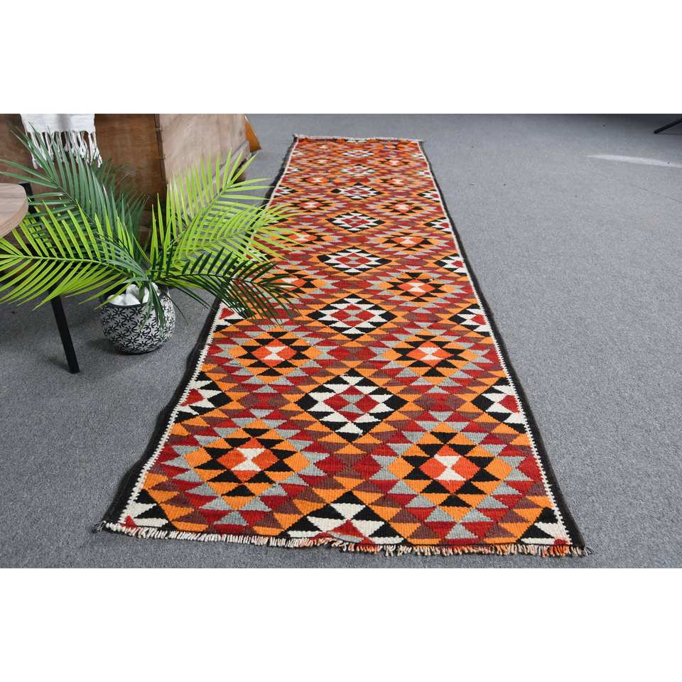 พรมปอสไตล์ตุรกีโบราณขนาด23 x 88ft พรมปอกระเจาขนสัตว์ถักทอสีส้มและสีแดงตัวหนาสำหรับวัยรุ่นสำหรับใช้ในห้องโถง