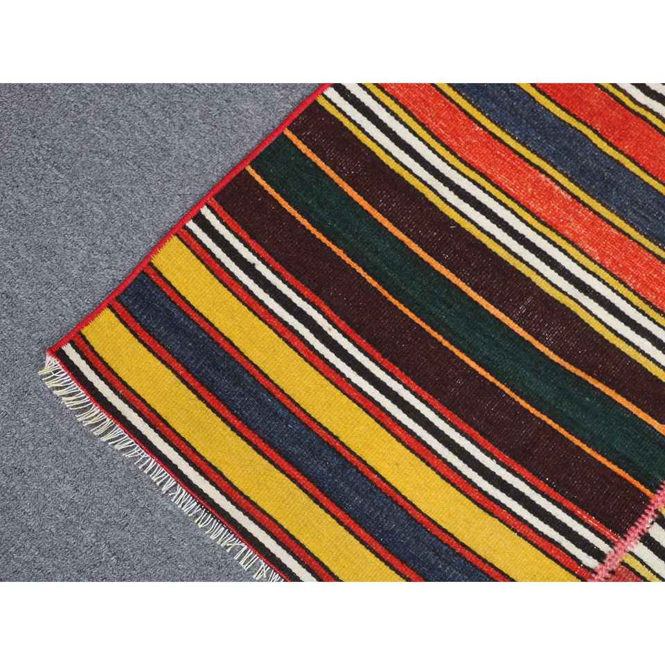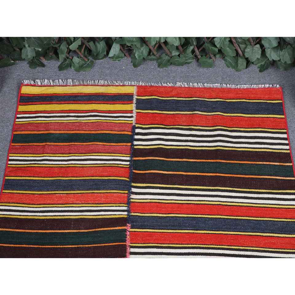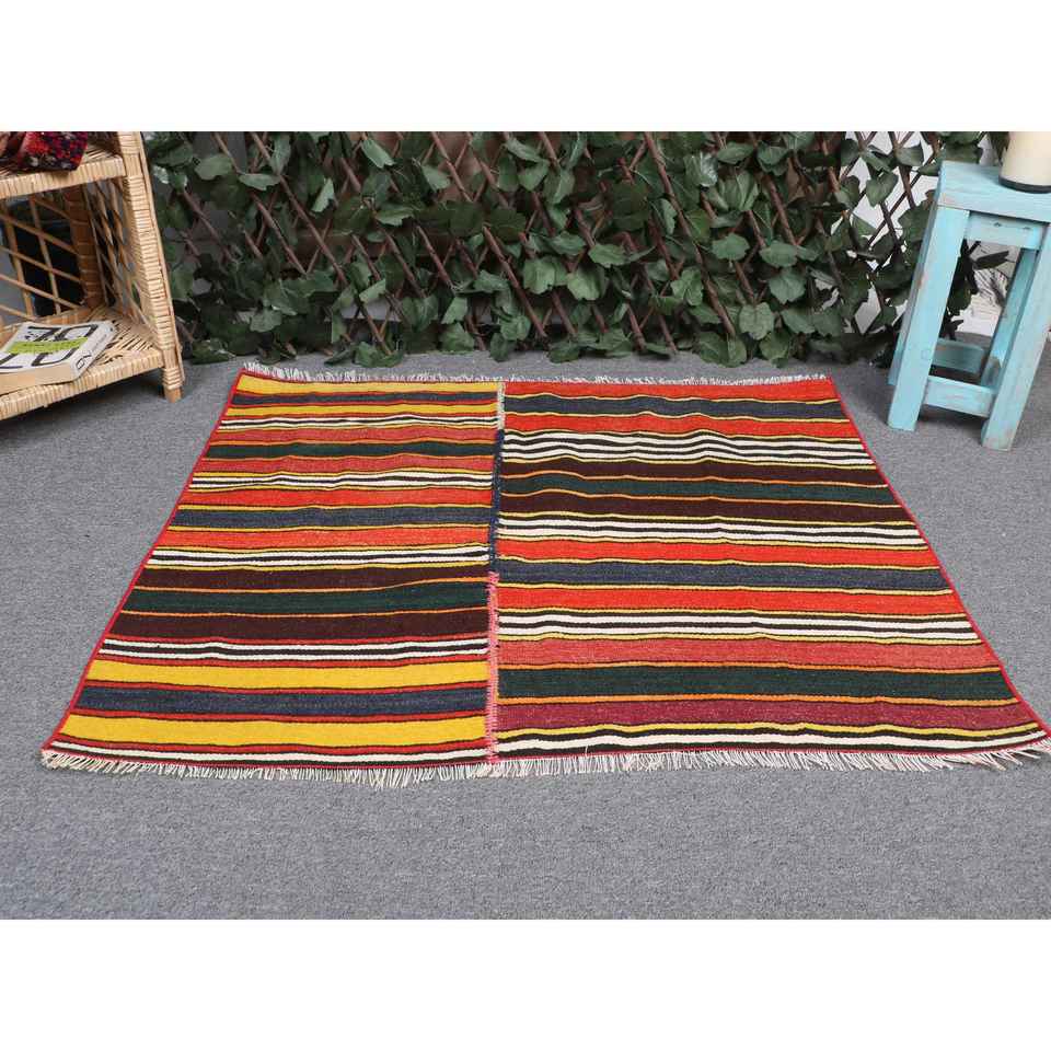 พรมคิลิมตุรกีโบราณ ขนาด 3.3x2.6 ฟุต (100x80 ซม.) พรมขนสัตว์ลายดอกไม้สีแดง