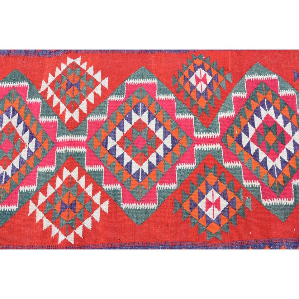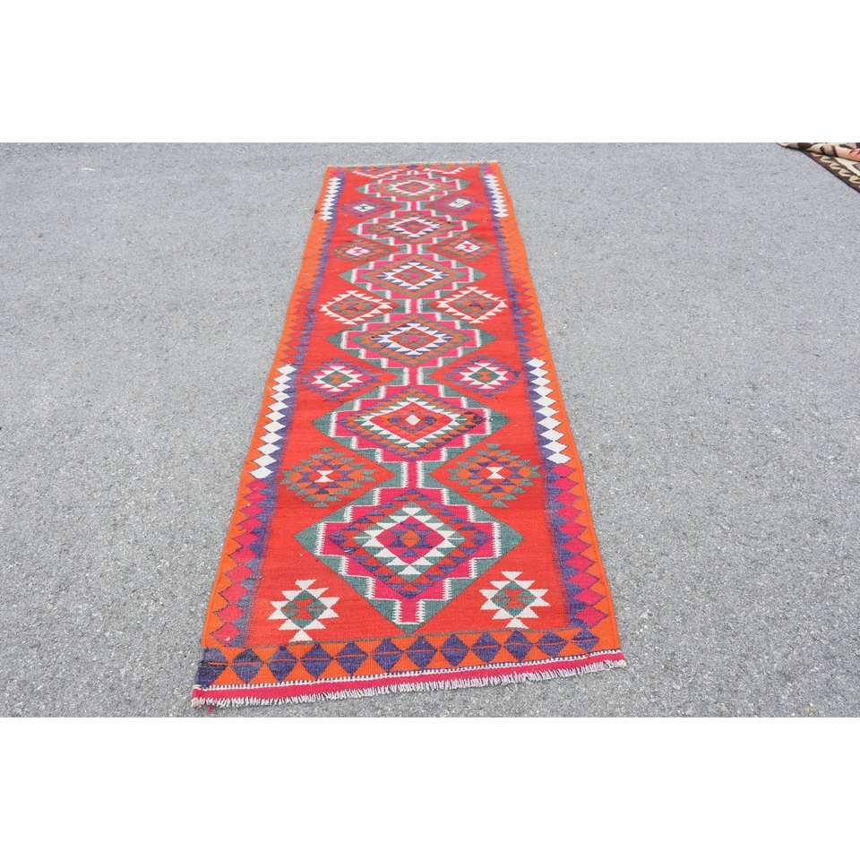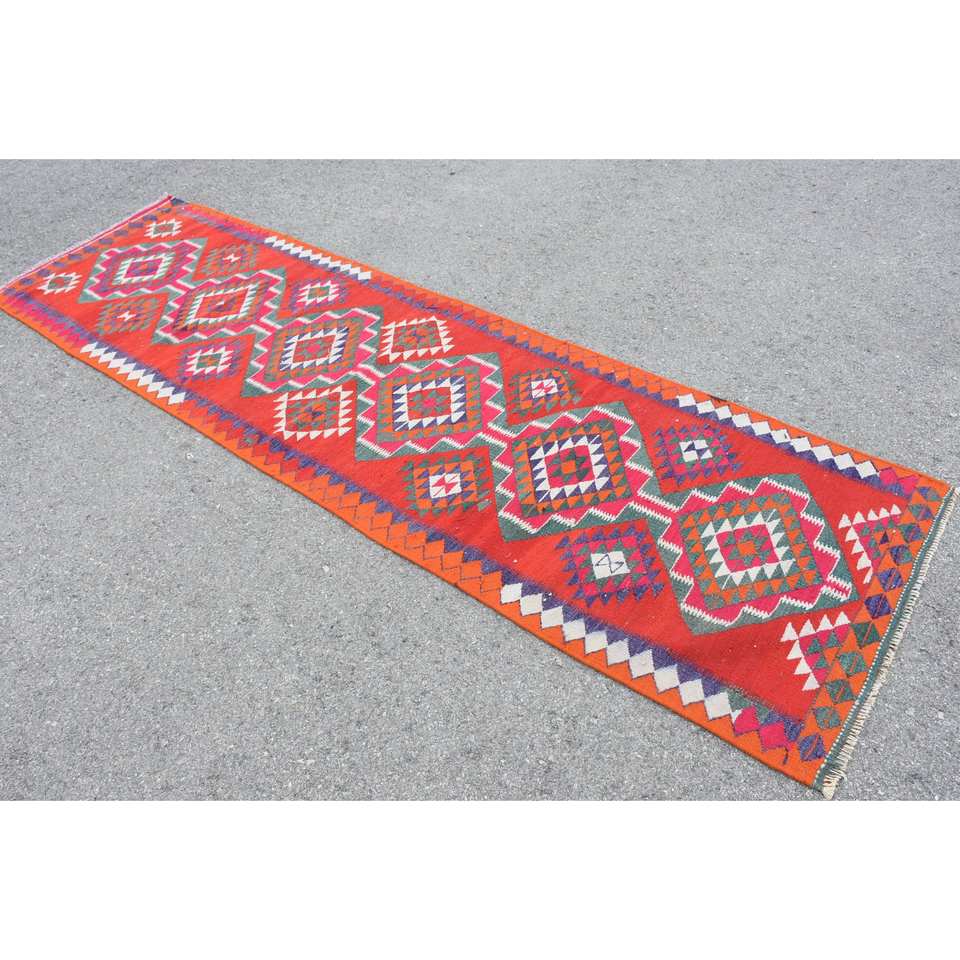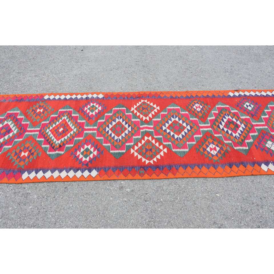 พรมตุรกีโบราณ32x106ฟุตวัสดุขนสัตว์ดีไซน์เย็บปะติดปะต่อกันสีเขียวแดงมีแผ่นยางรองสำหรับทางเข้าห้องวัยรุ่น