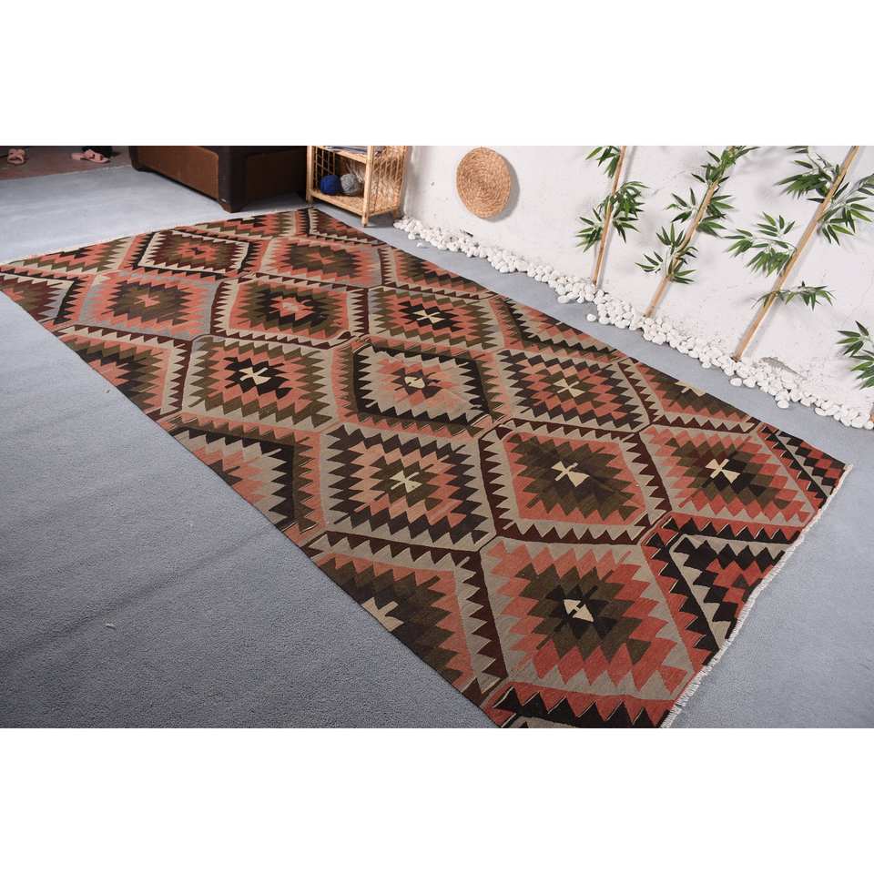 พรมถักสไตล์ตุรกีโบราณขนาด6.1 x สีน้ำตาล10.3ft เบจวัสดุขนสัตว์ลาเท็กซ์สำหรับห้องนั่งเล่นห้องโถงสำหรับวัยรุ่น