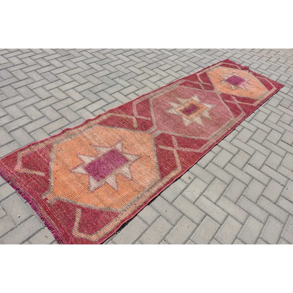 พรมถักสไตล์วินเทจสไตล์ตุรกีดีไซน์งานเย็บปะสีส้มแดงวัสดุขนแกะ27x97ft มีแผ่นยางรองสำหรับวัยรุ่น
