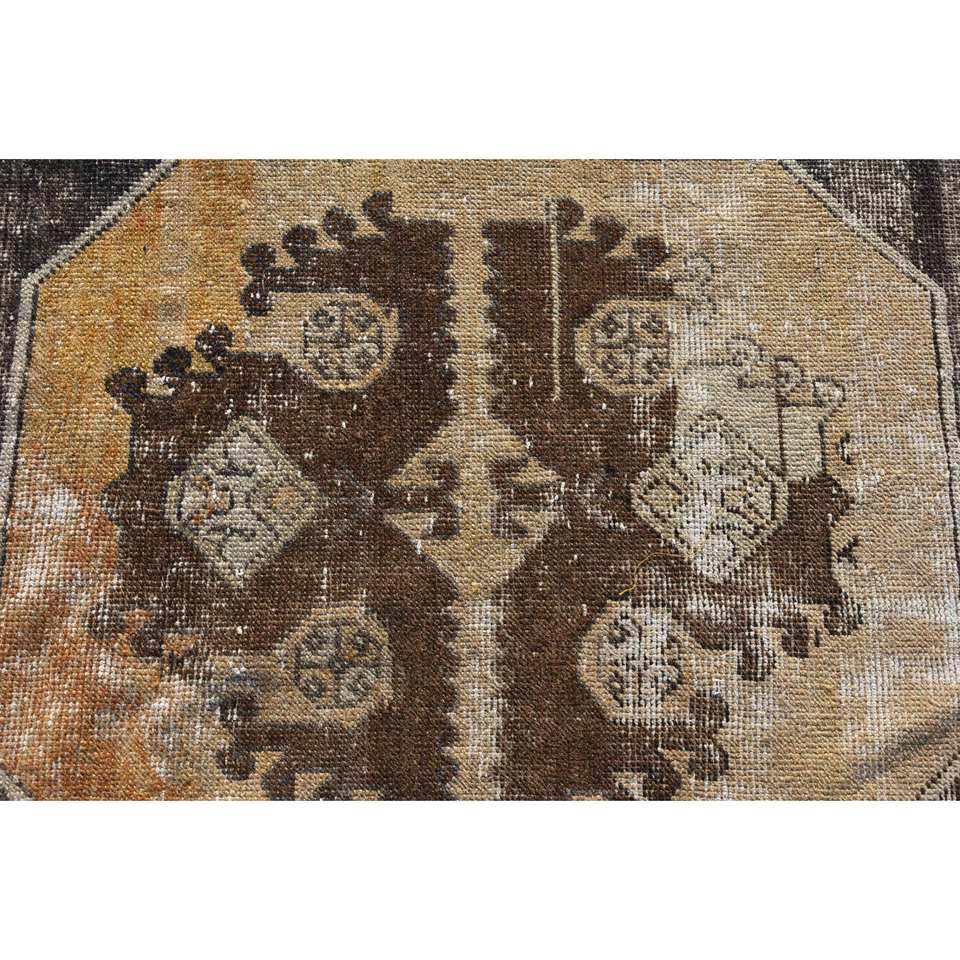 พรมปูพื้นขนาดใหญ่สไตล์ตุรกีวินเทจ22 x 11.3ft วัสดุขนสัตว์ดีไซน์เย็บปะต่อสีน้ำตาลคลาสสิกพร้อมยางรองสำหรับห้องวัยรุ่น