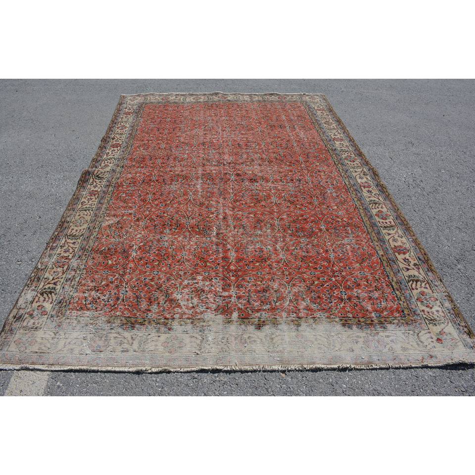 พรมปูพื้นขนาดใหญ่สไตล์ตุรกีวินเทจคลาสสิกสีแดงเบจ6.7 x 10.1ft สไตล์การเย็บปะติดปะต่อกันยางขนสัตว์10มม. สำหรับตกแต่งห้องโถงห้อง