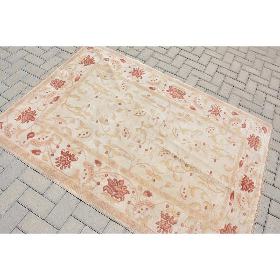 พรมปูพื้นขนาดใหญ่สไตล์ตุรกีวินเทจแบบคลาสสิกสีเบจสีแดงขนาด4.2x6ฟุตผ้าขนสัตว์แอบสแตรกสำหรับวัยรุ่นดีไซน์โถงทางเดินทรงสี่เหลี่ยมผืนผ้า