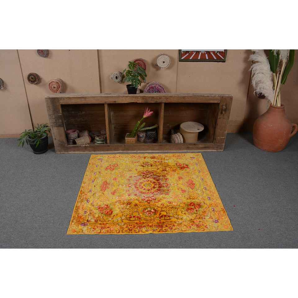 พรมปูพื้นขนาดใหญ่สไตล์ตุรกีวินเทจแบบคลาสสิกลายปะต่อสีเหลืองสีแดงผ้าขนแกะสี่เหลี่ยมขนาด9x12สำหรับพรมห้องโถงห้อง