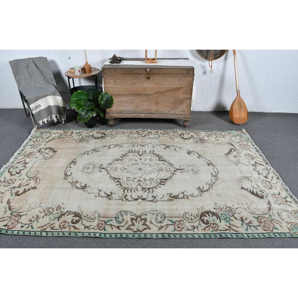 พรมปูพื้นขนาดใหญ่สไตล์วินเทจสไตล์เบจคลาสสิกขนาด5 'x 8' ผ้าขนสัตว์ยางเย็บปะติดปะต่อกันสี่เหลี่ยมผืนผ้าพรมปูในห้องโถง