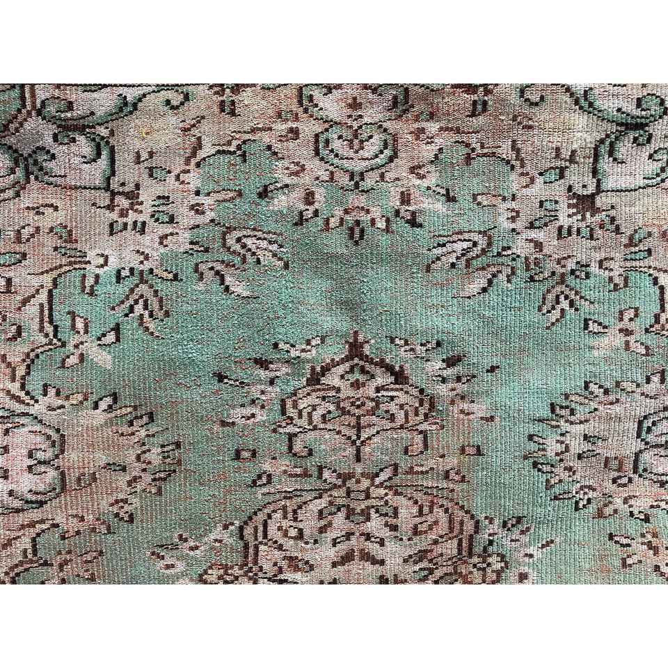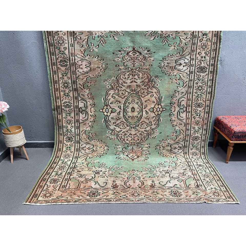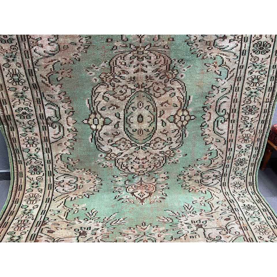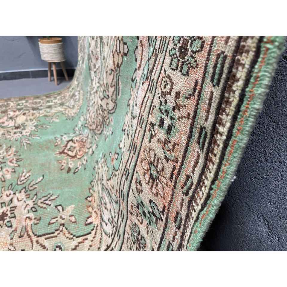 พรมตุรกีโบราณขนาดใหญ่ 6.46x8.9 ฟุต (197x271 ซม.) ลายตารางสีเขียว