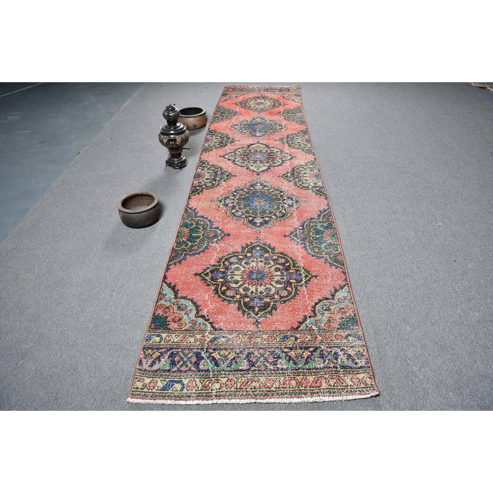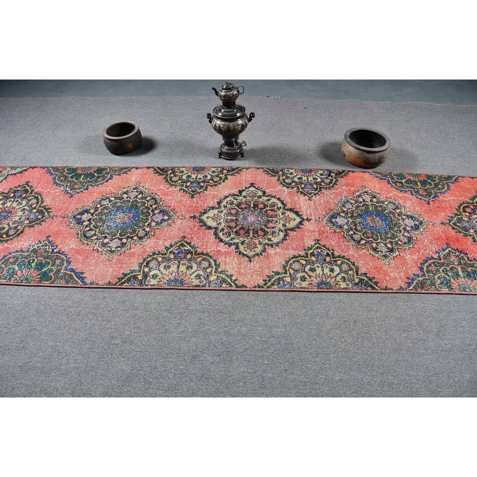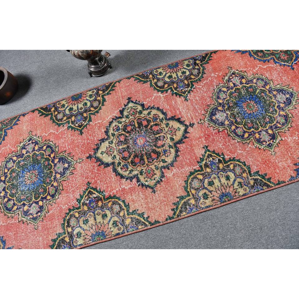 พรมปูพื้นขนาดใหญ่สไตล์ตะวันออกสไตล์วินเทจ31x132ฟุตวัสดุขนสัตว์ดีไซน์เย็บปะสีแดงน้ำเงินมีแผ่นยางรองสำหรับวัยรุ่น