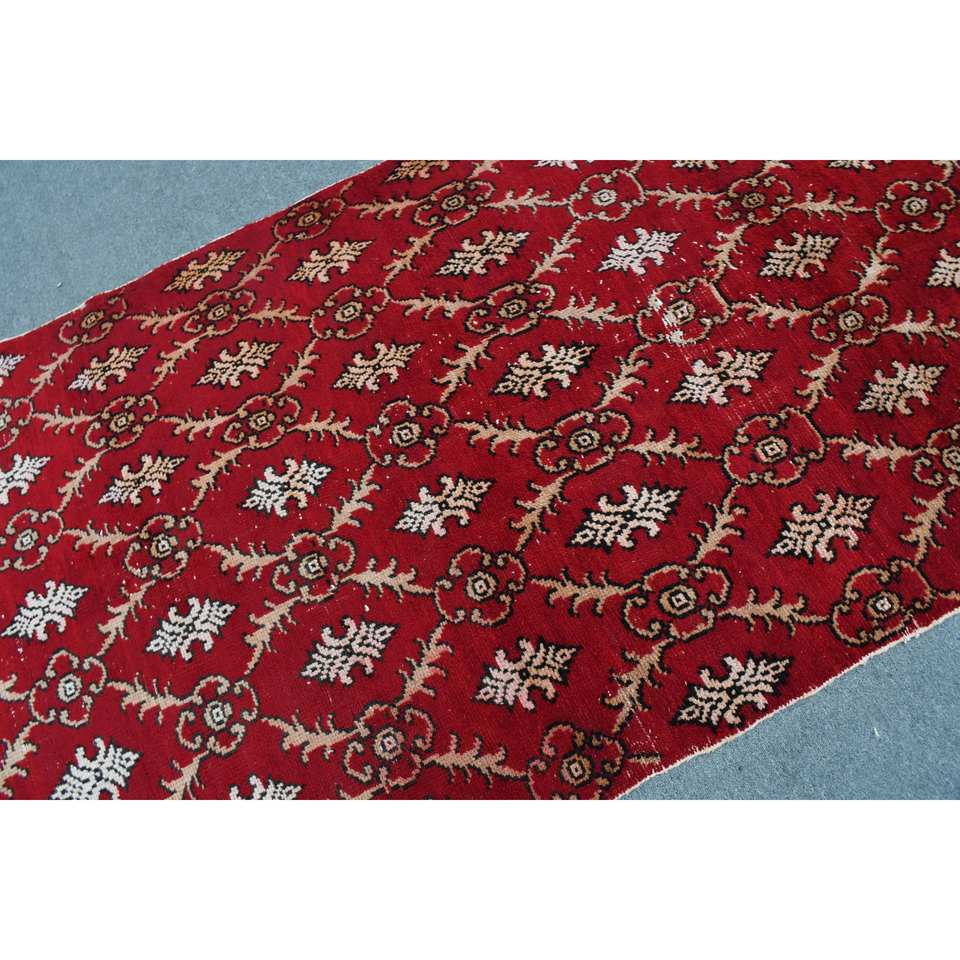พรมขนสีแดงตุรกีวินเทจ4.2 x 8.6ft พื้นที่ขนาดใหญ่สี่เหลี่ยมผืนผ้ารูปแบบนามธรรมสำหรับห้องโถงทางเข้า10มม. ความหนารุ่นใหม่