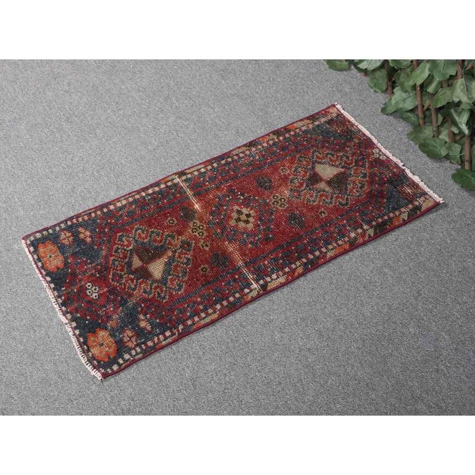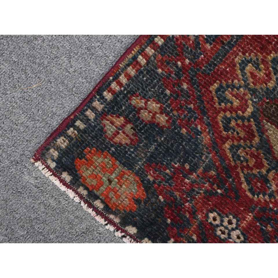 พรมตุรกีวินเทจ ขนาด 1.2x2.6 ฟุต สีแดงลายพรางเล็กๆ ทำจากขนสัตว์