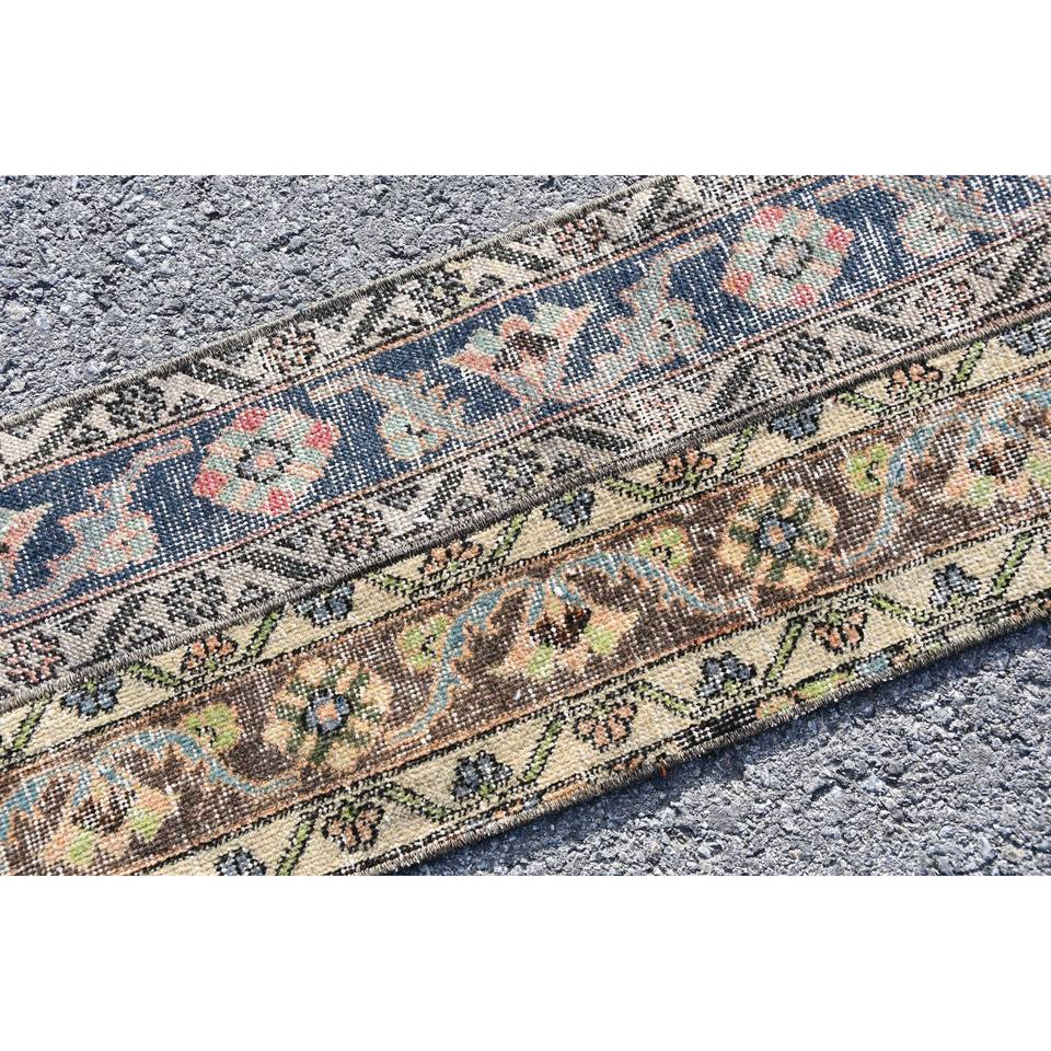 พรมตุรกีวินเทจ ขนาด 1.3 x 3.2 ฟุต สีน้ำเงิน ลายปะติดปะต่อ ทำจากวัสดุขนสัตว์ เป็นมิตรกับสิ่งแวดล้อม KayraHome พรมปูพื้นขนาดใหญ่ รูปทรงสี่เหลี่ยมผืนผ้า สำหรับห้องโถง