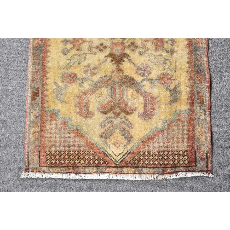 พรมตุรกีโบราณขนาด1.6X3ฟุตผ้าขนสัตว์สีน้ำตาลทำด้วยมือมีลวดลายปะติดสำหรับห้องวัยรุ่นโถงทางเดินทำจากยาง