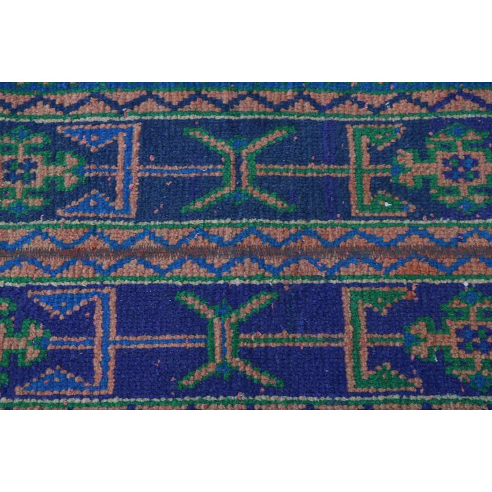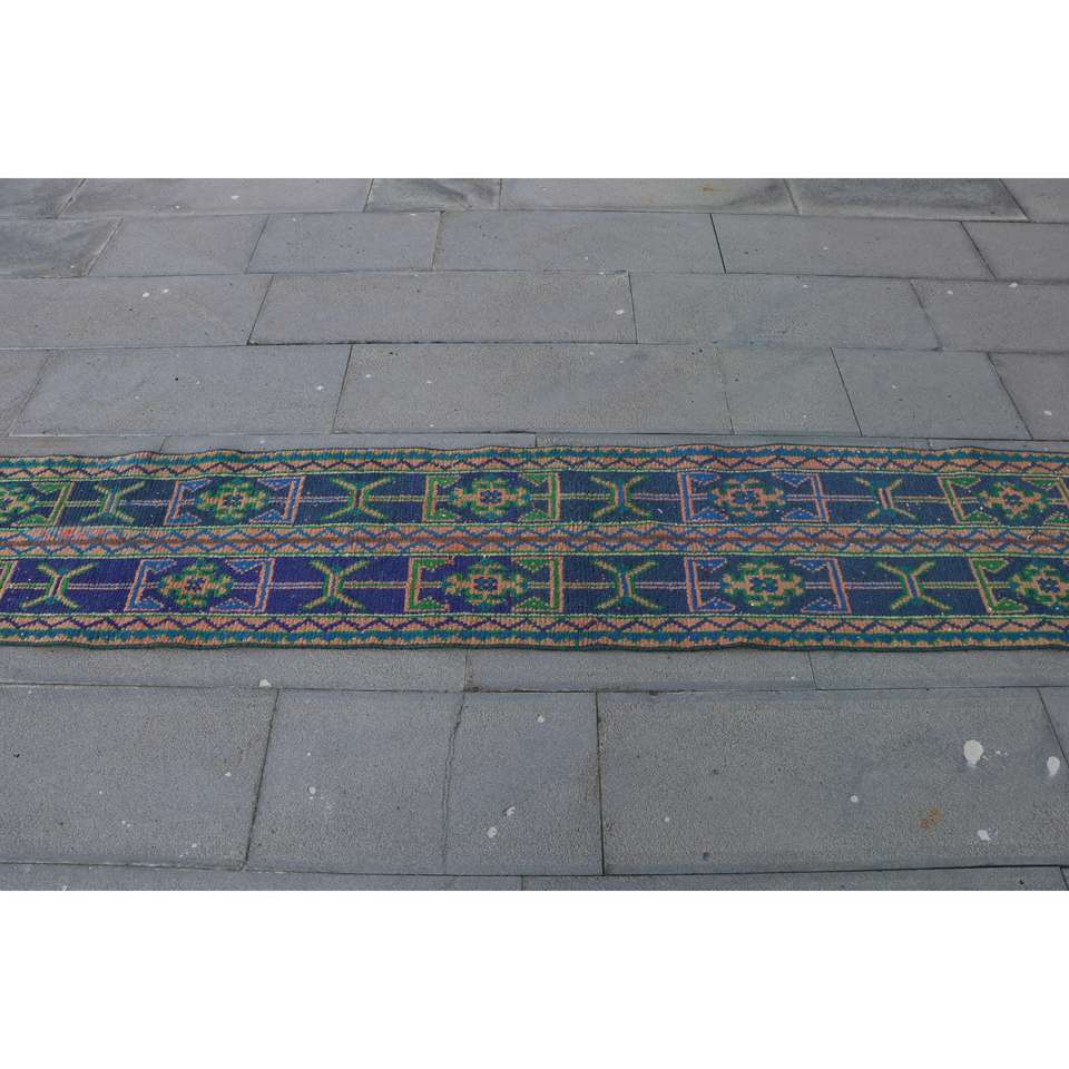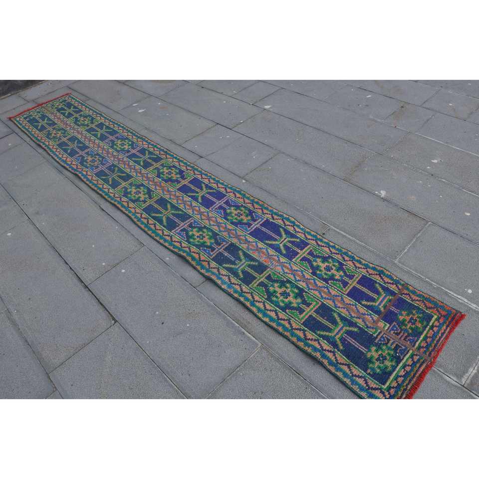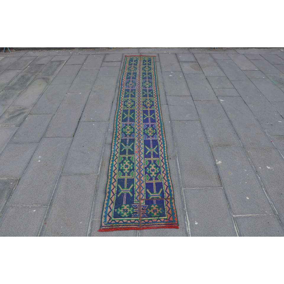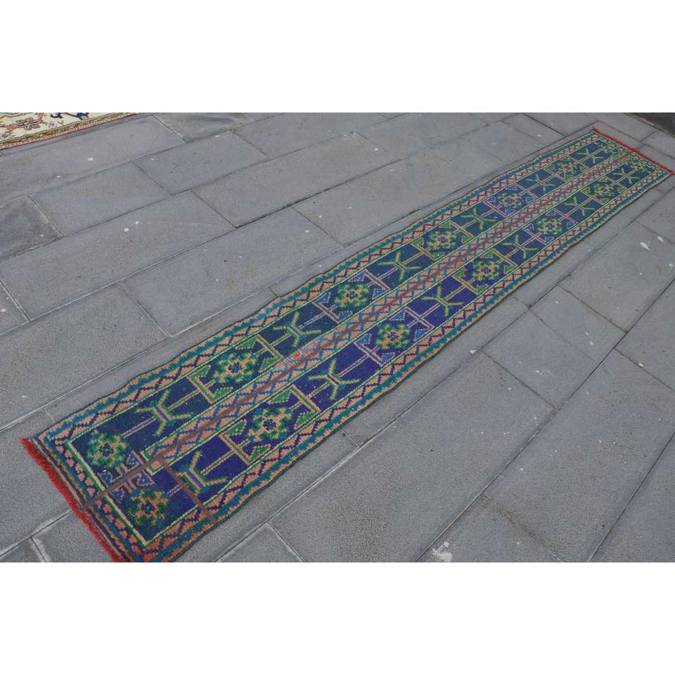 พรมตุรกีวินเทจ ขนาด 1.6x10.1 ฟุต พรมลายต้นไม้และพืชสีน้ำเงิน