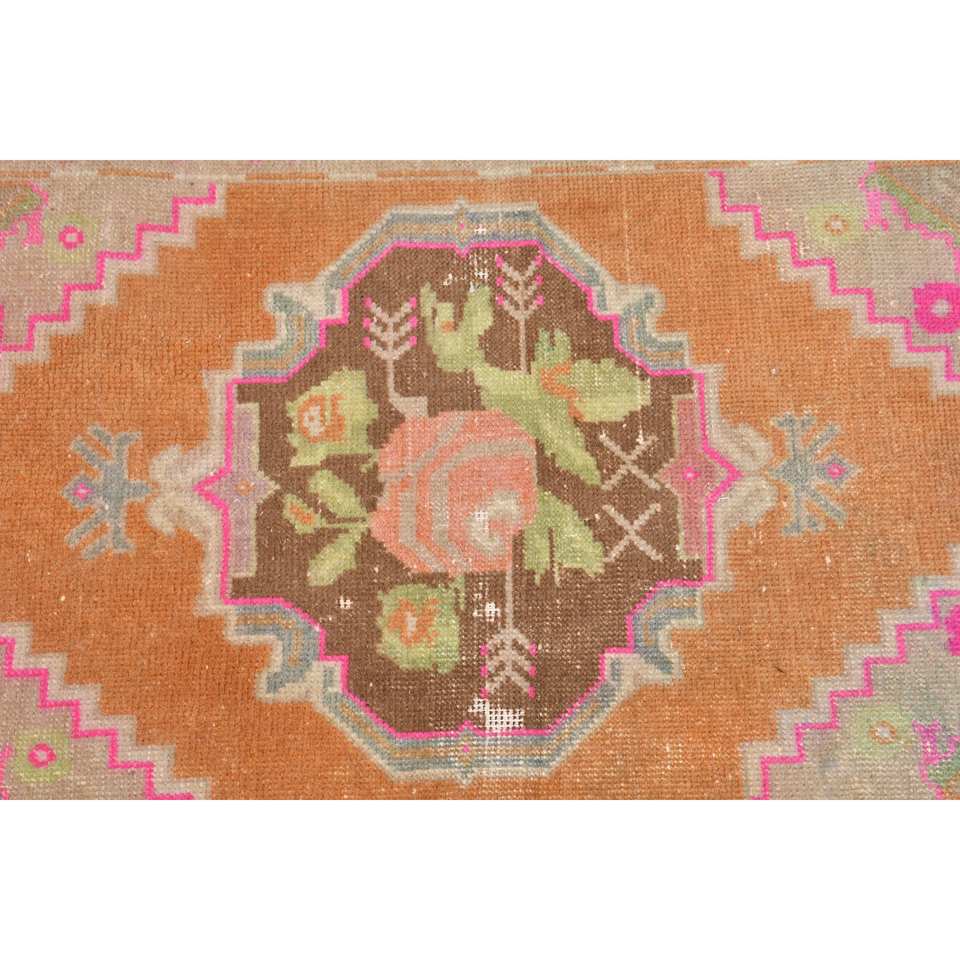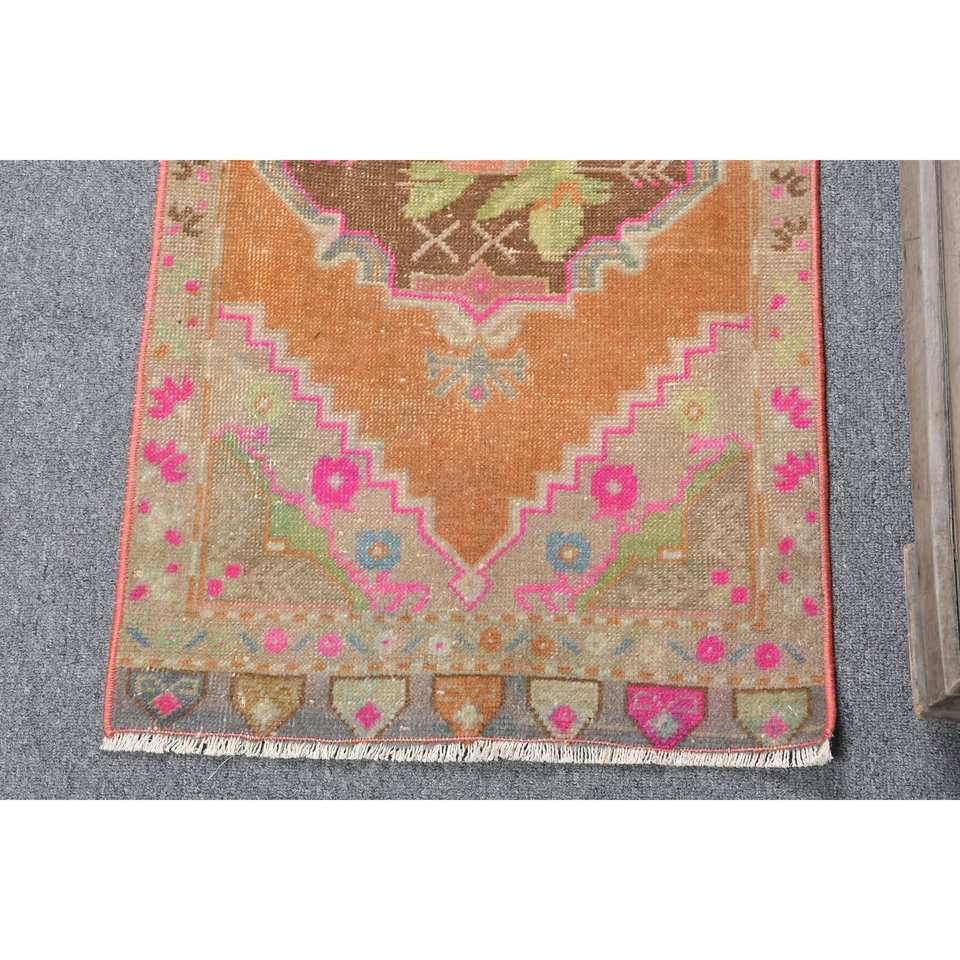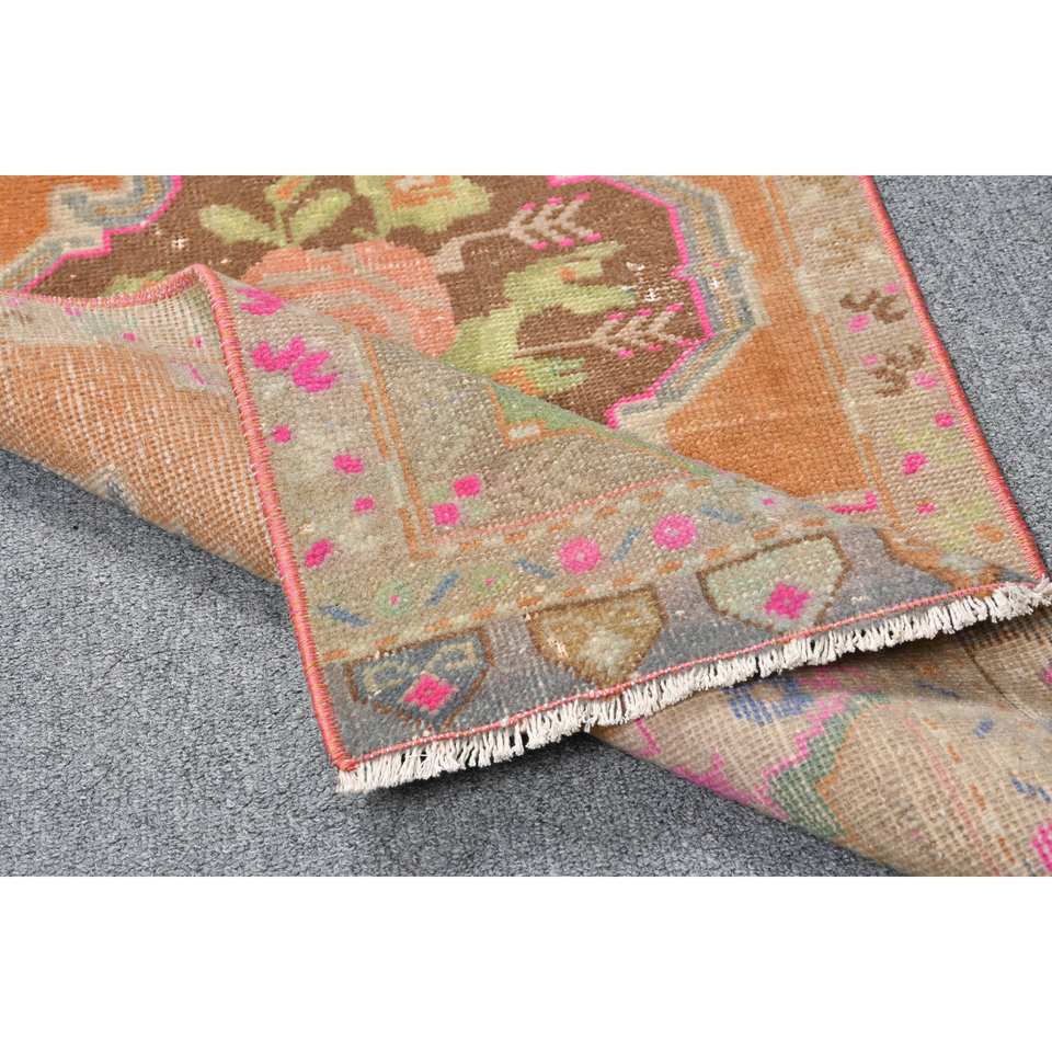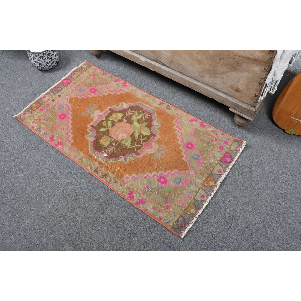 พรมตุรกีโบราณ1.7 x 3.3ft สีส้มพื้นที่ขนาดใหญ่สีชมพูการเย็บปะติดปะต่อกันด้วยผ้าขนสัตว์สี่เหลี่ยมผืนผ้าออกแบบสำหรับห้องโถงพรมยางสำหรับห้อง