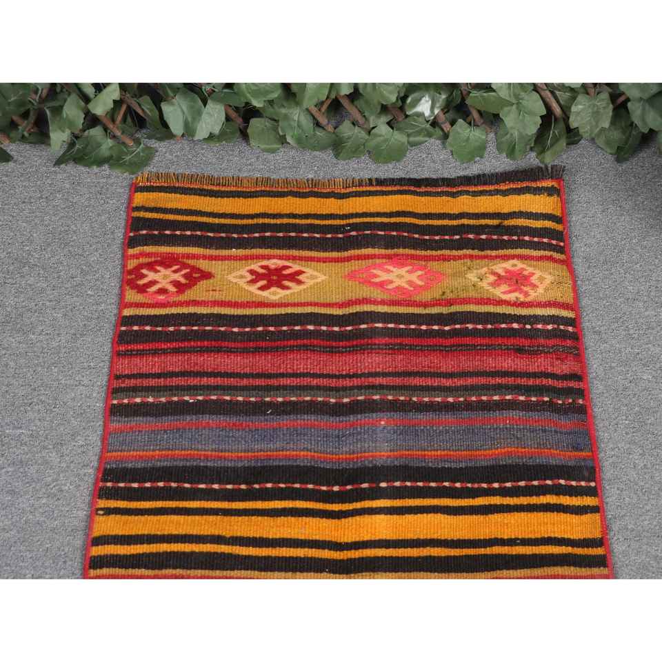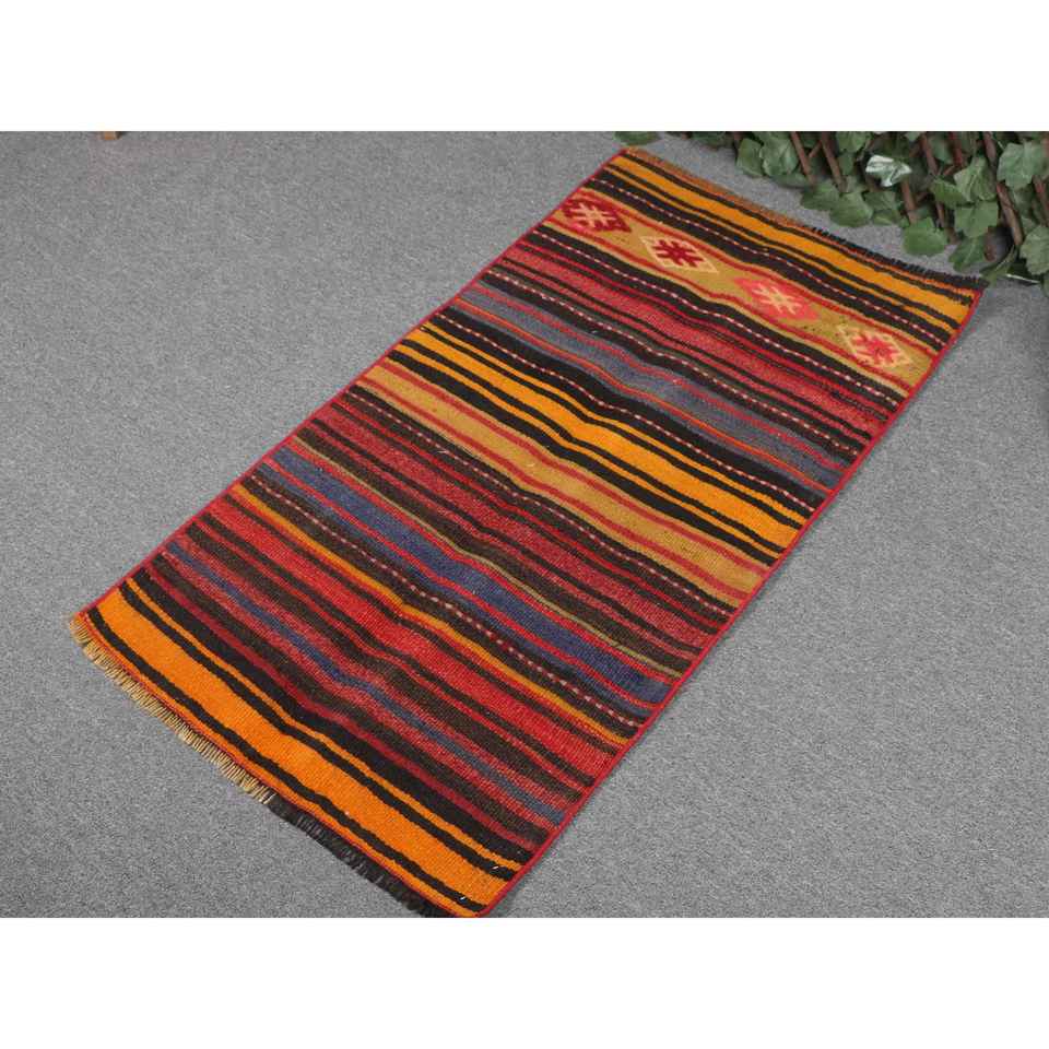 พรมตุรกีวินเทจ ขนาดเล็ก 1.9x3.6 ฟุต พรมลายพรางสีแดงน้ำเงิน ทำจากขนสัตว์