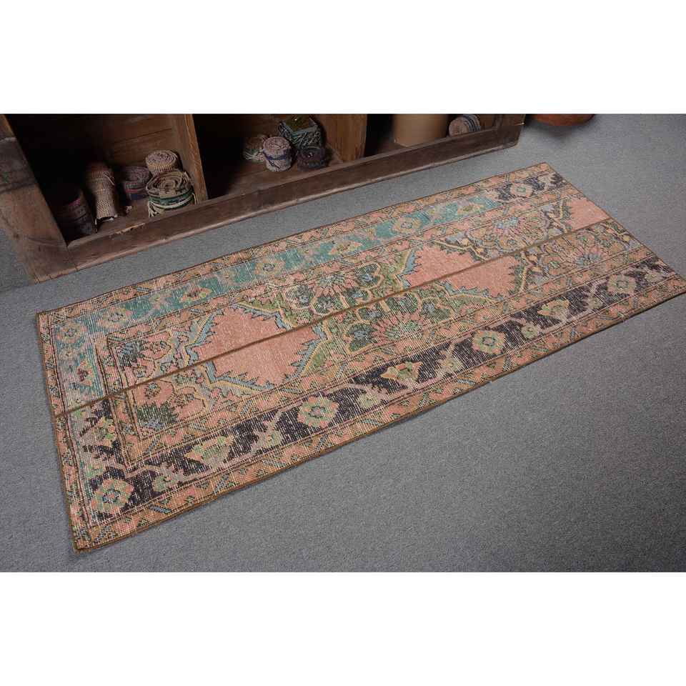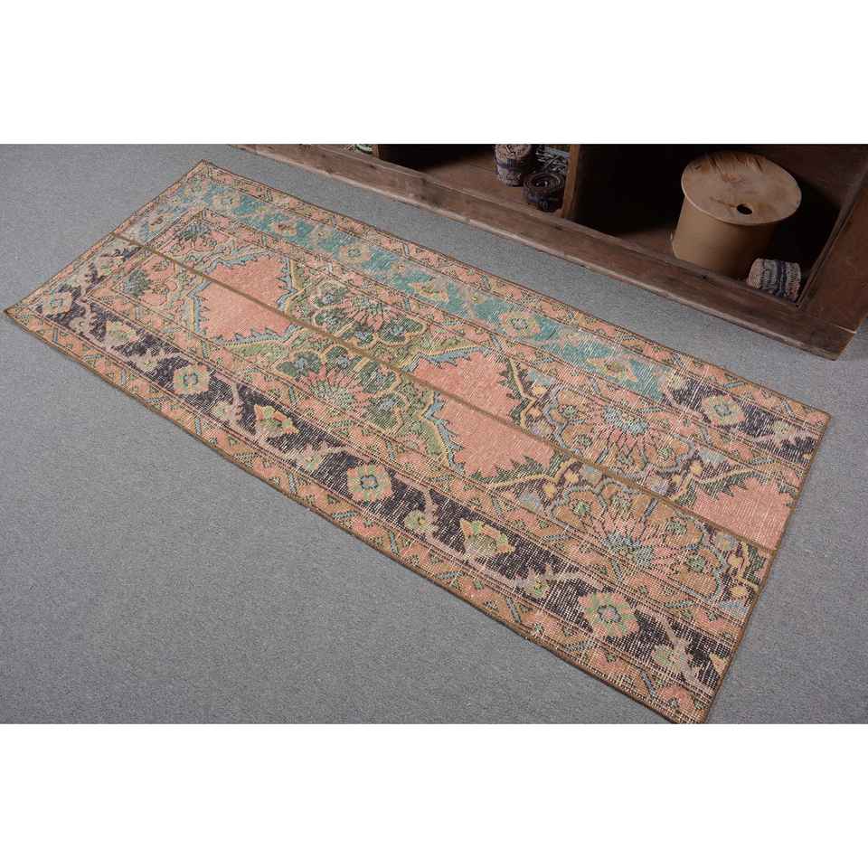 พรมตุรกีโบราณ2.4 x 6FT คลาสสิกพื้นที่ขนาดใหญ่รูปสี่เหลี่ยมผืนผ้าการเย็บปะติดปะต่อกันสีส้มสดใสวัสดุผ้าขนสัตว์สีฟ้าเข้ม4เมตร