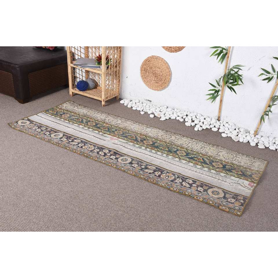 พรมตุรกีโบราณ2.7 x 7ft ขนแกะสีขาวคลาสสิกดีไซน์เย็บปะติดปะต่อกันพร้อมแผ่นรองยางสำหรับความสูงกองสูง