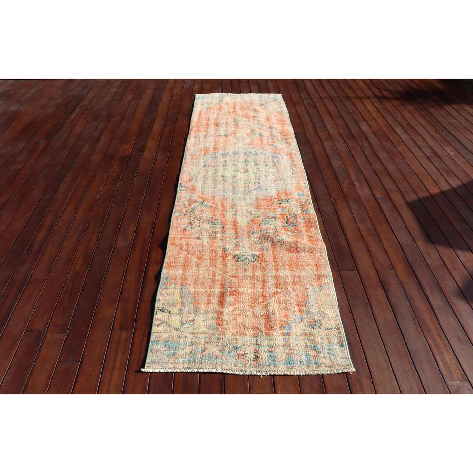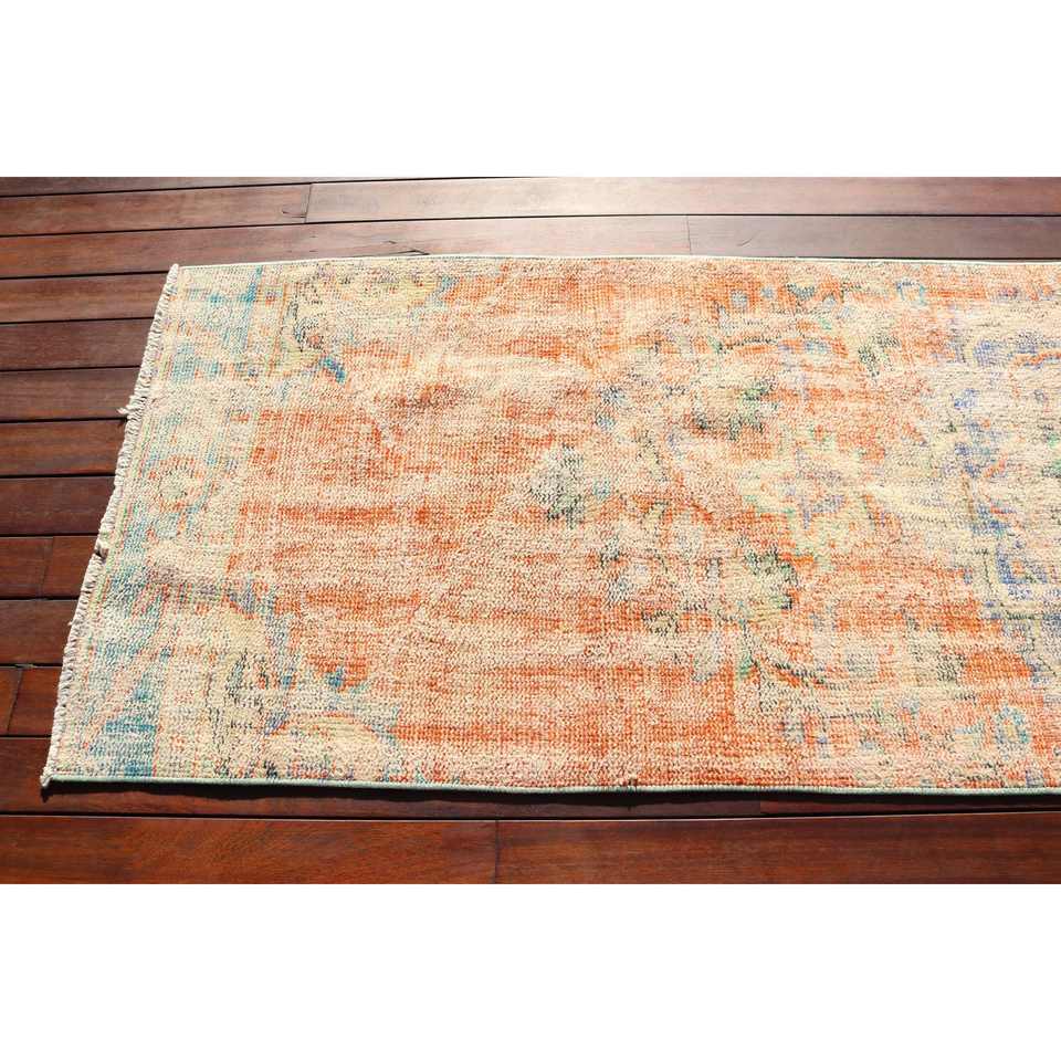 พรมตุรกีวินเทจ ขนาด 2.7x9.3 ฟุต (81x283 ซม.) ลายสัตว์สีส้มน้ำเงิน