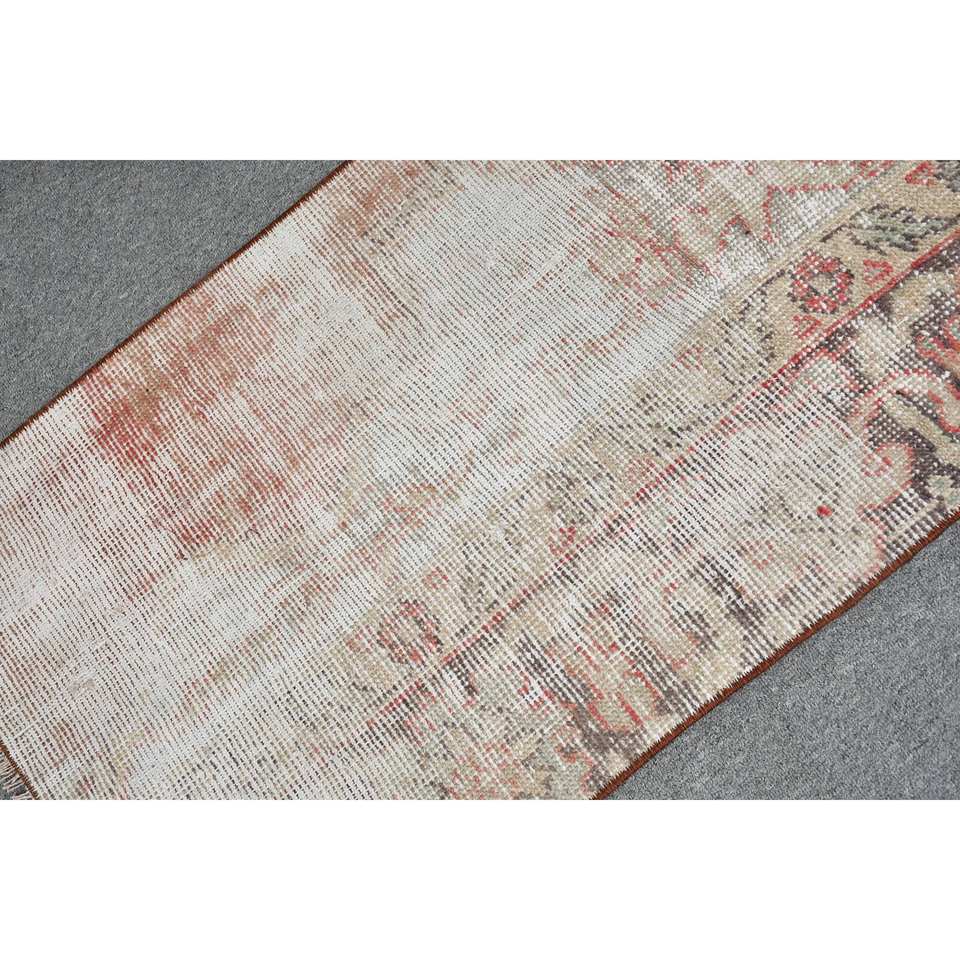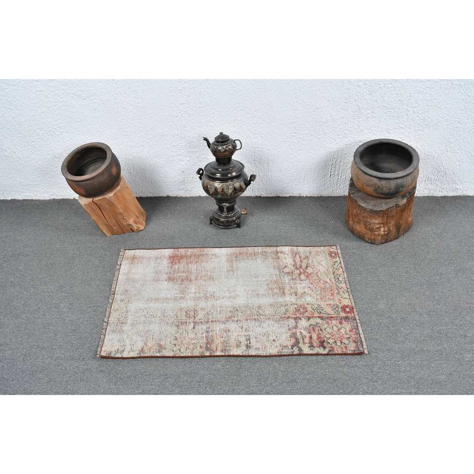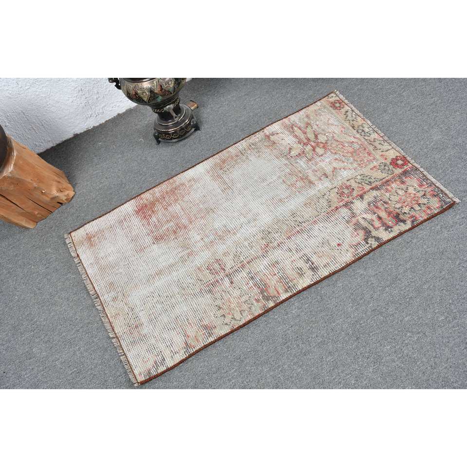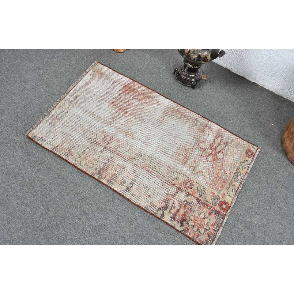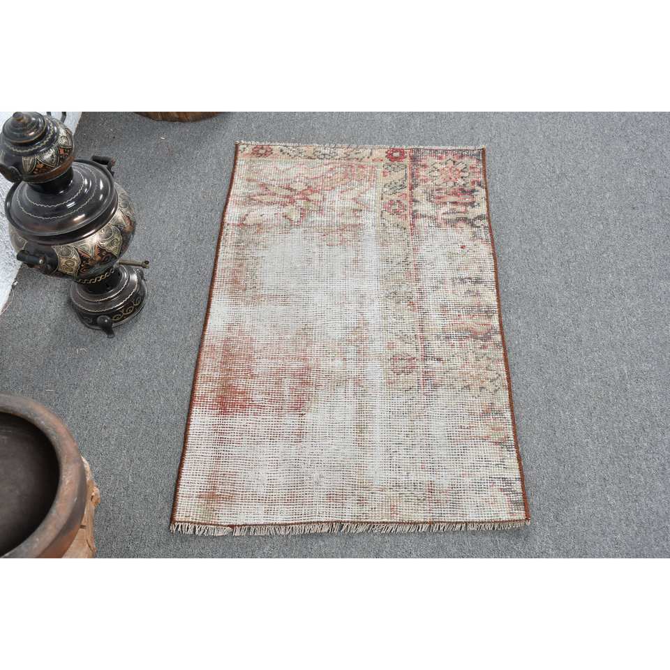 พรมตุรกีวินเทจ2x3ft ขนแกะเย็บปะติดปะต่อกันสีแดงสีเบจห้องโถงสี่เหลี่ยมผืนผ้าสำหรับห้องข้างเตียงใหม่พร้อมยางรอง