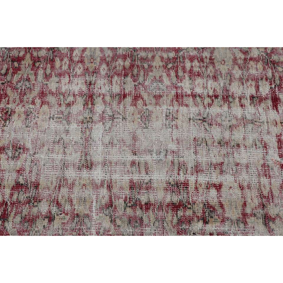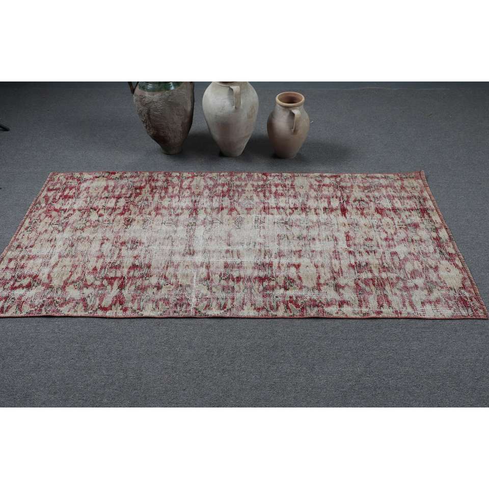 พรมตุรกีวินเทจ ขนาด 3.1x6.5 ฟุต (93x198 ซม.) พรมลายปะติดสีแดง