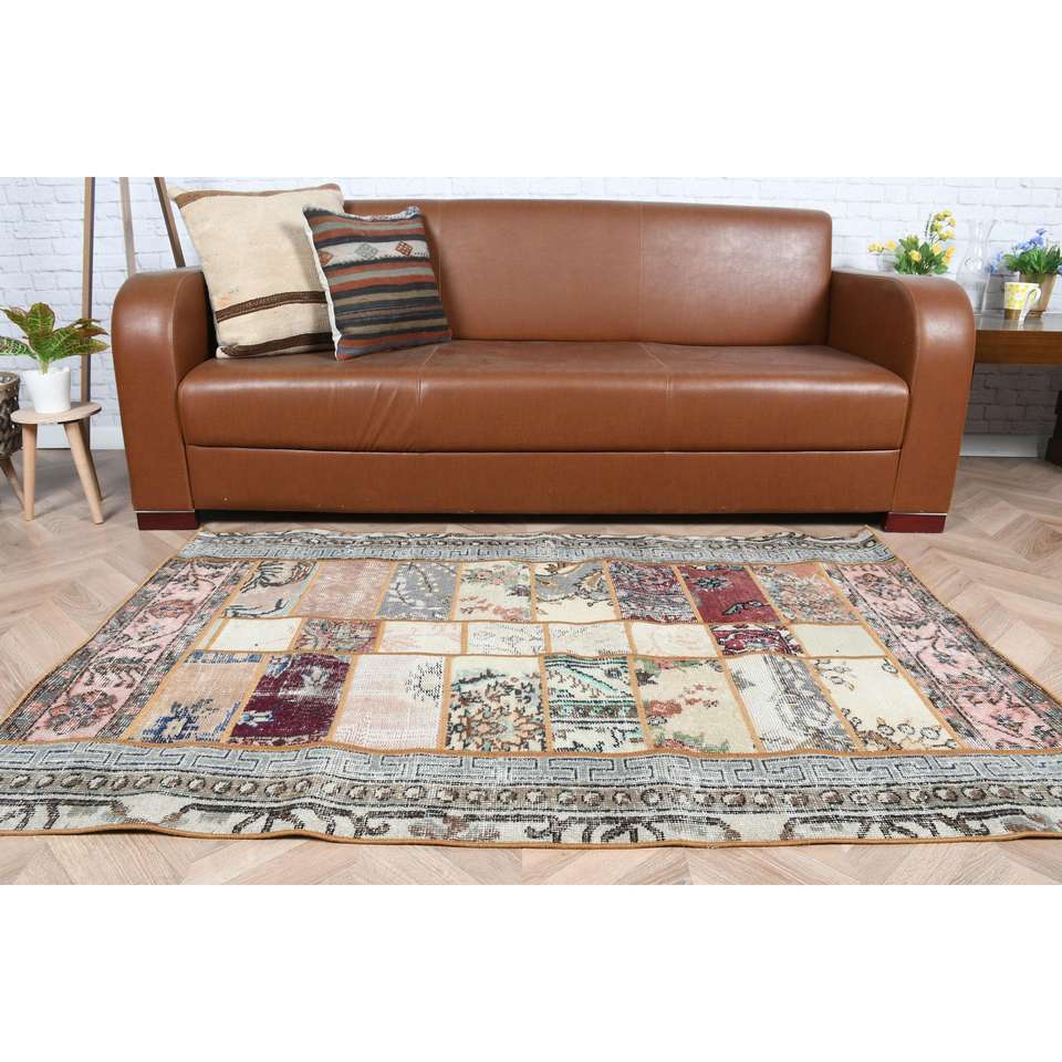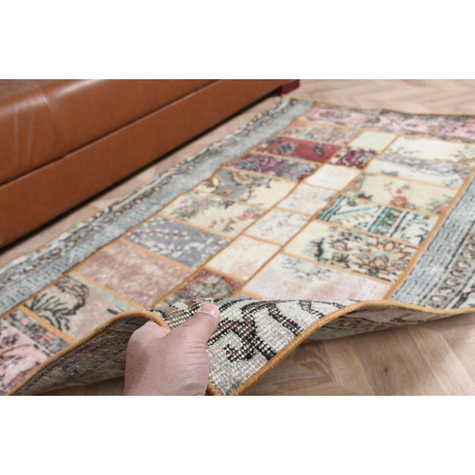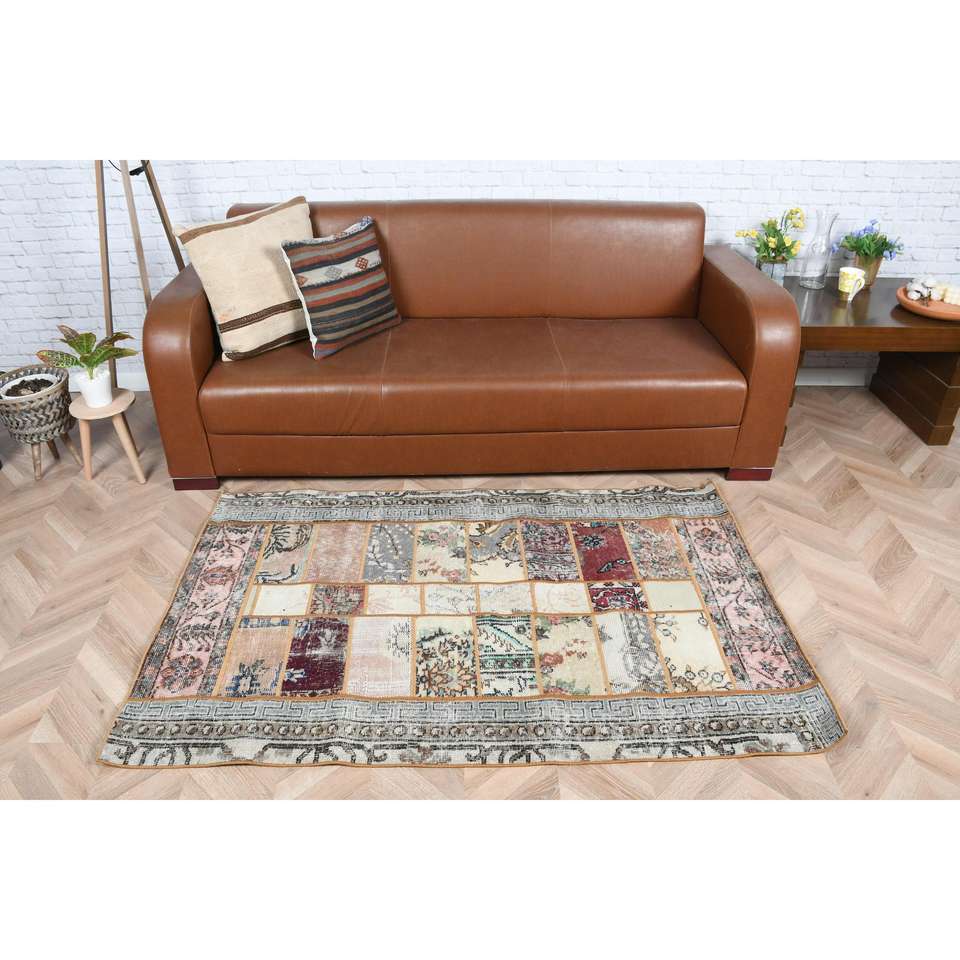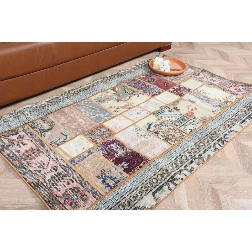 พรมตุรกีโบราณ ขนาด 3.4x5.3 ฟุต พรมลายพรางสีน้ำเงิน ทำจากขนสัตว์