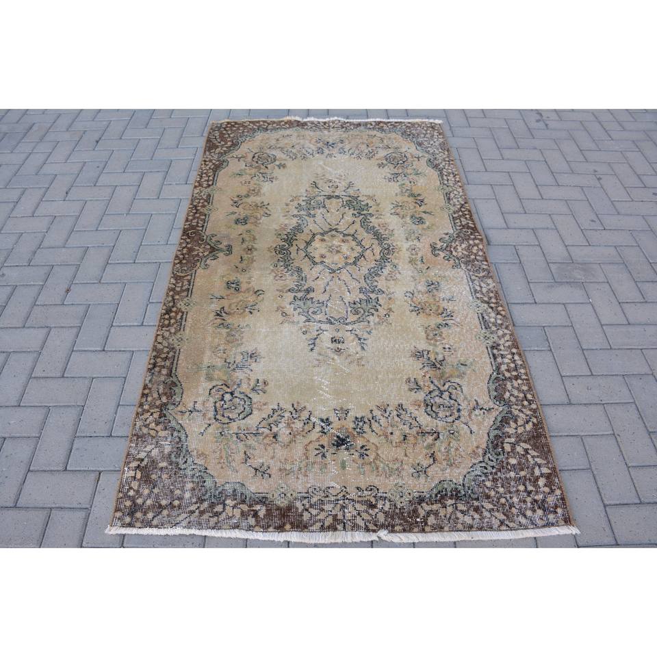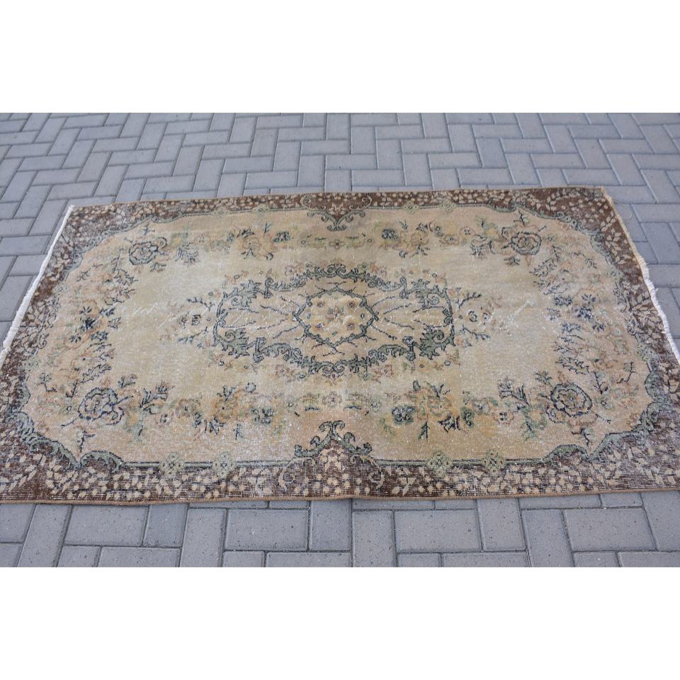 พรมตุรกีโบราณ3.8 x 6.6ft สีเบจสีน้ำตาลคลาสสิกพื้นที่ขนาดใหญ่การออกแบบเย็บปะติดปะต่อกันด้วยผ้าขนสัตว์ผ้าขนสัตว์สี่เหลี่ยมห้องโถงน้ำยางสำหรับห้องพัก