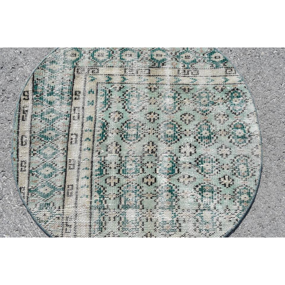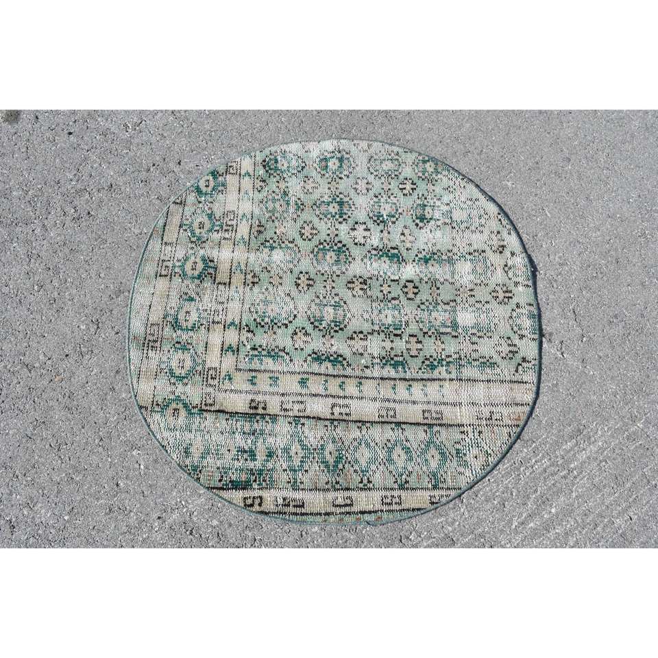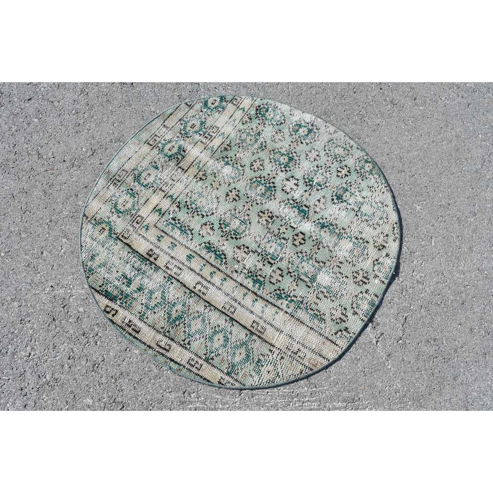 พรมขนแกะสไตล์วินเทจขน3x3ft งานปะต่อทรงสี่เหลี่ยมผืนผ้าสีเขียวงานปะผ้าสีเบจขนาดใหญ่งานแฮนด์เมดสำหรับวัยรุ่นใช้ในห้องโถง
