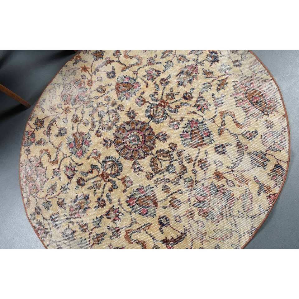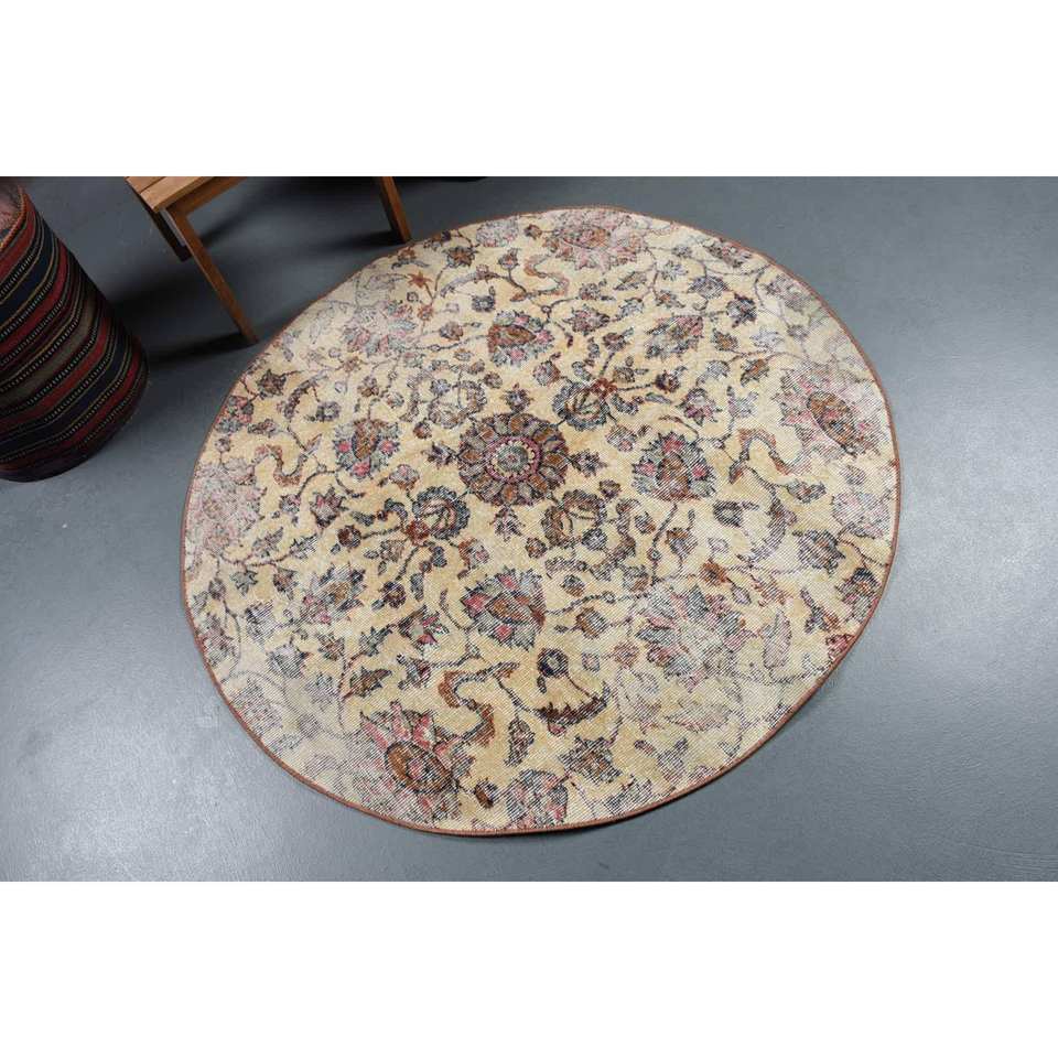 พรมตุรกีวินเทจ4.3ft 4.2 x งานแฮนด์เมดสีเบจผ้ากำมะหยี่ขนยาวทรงสี่เหลี่ยมผืนผ้าเย็บปะติดปะต่อกันลายผ้าไหมไม้ไผ่สำหรับวัยรุ่น