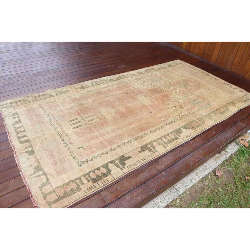 พรมตุรกีโบราณ ขนาด 4.2x8.5 ฟุต พรมขนสัตว์ลายดอกไม้สีแดง