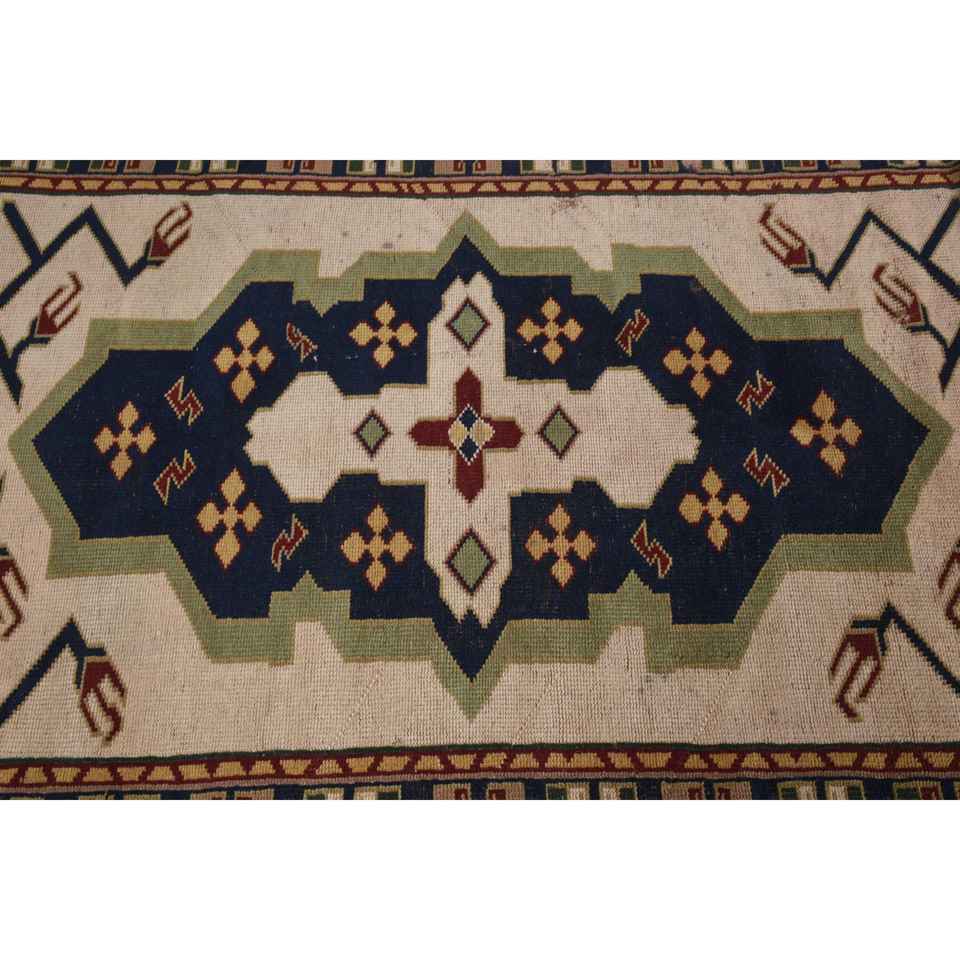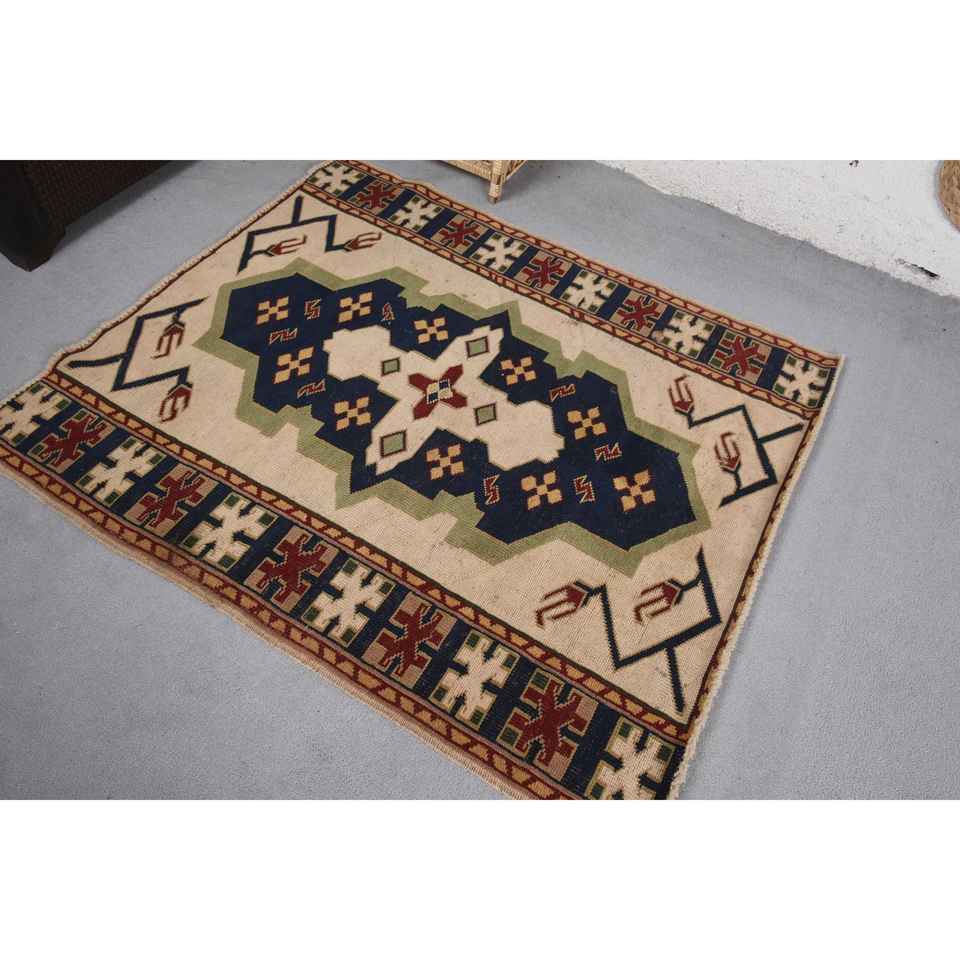 พรมตุรกีวินเทจ ขนาด 4.3x4.9 ฟุต (131x149 ซม.) พรมขนสัตว์สีเบจ