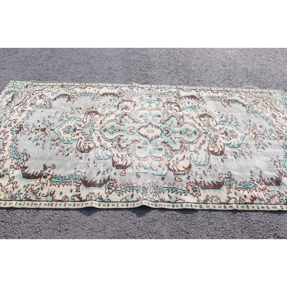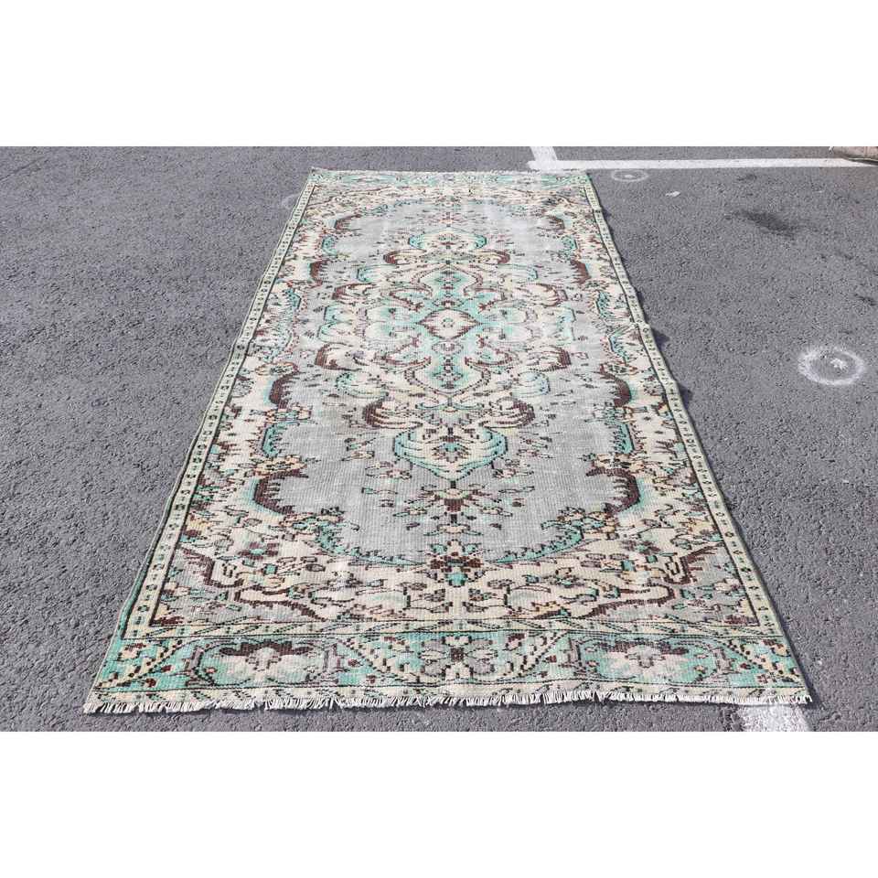 พรมตุรกีโบราณ ขนาด 4.6x9.2 ฟุต (140x280 ซม.) พรมขนสัตว์สีน้ำเงิน