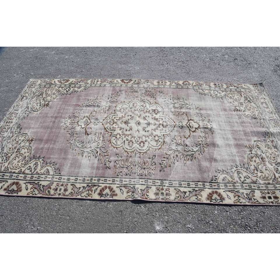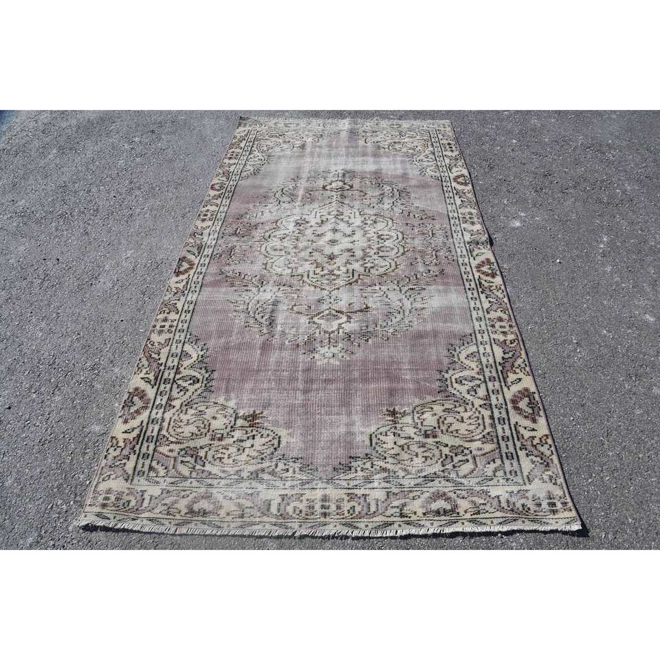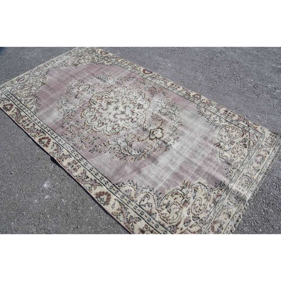 พรมตุรกีโบราณขนาด4.7x8.5ฟุตผ้าขนสัตว์สีน้ำตาลเบจและลาเท็กซ์ด้านหลังแบนลายเย็บปะติดปะต่อกันสำหรับห้องนั่งเล่นวัยรุ่น