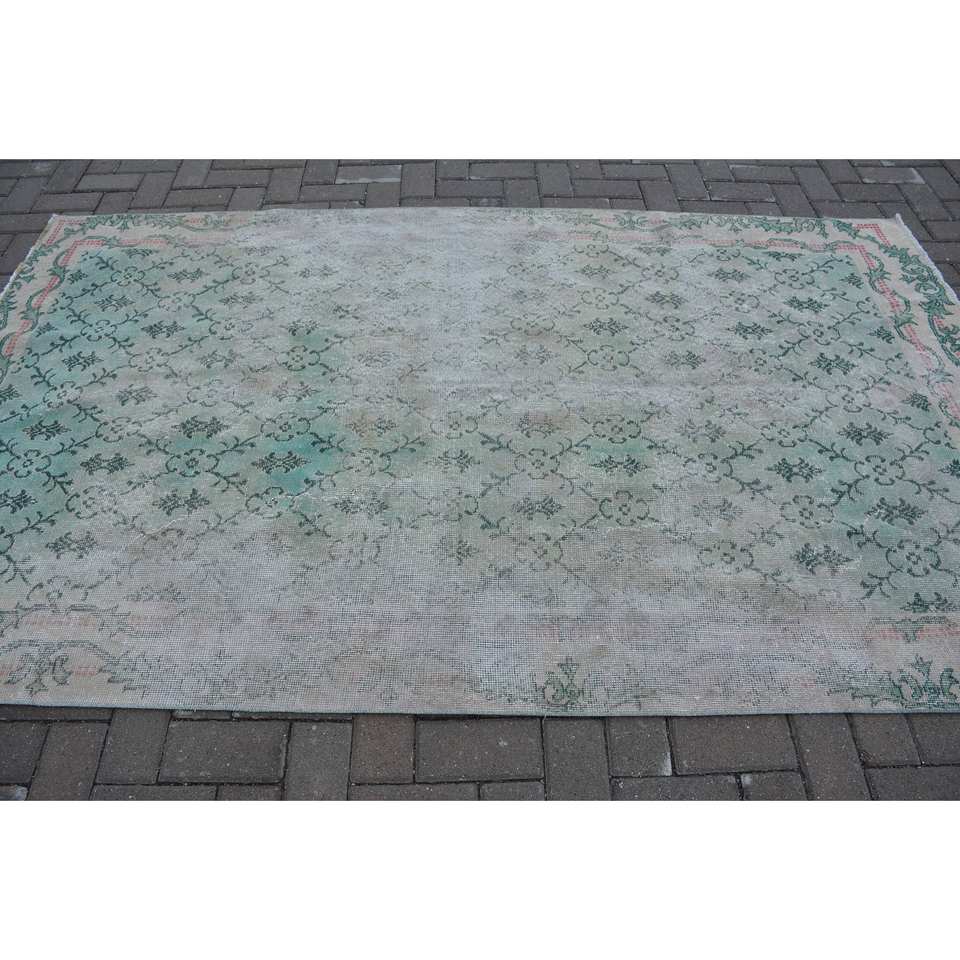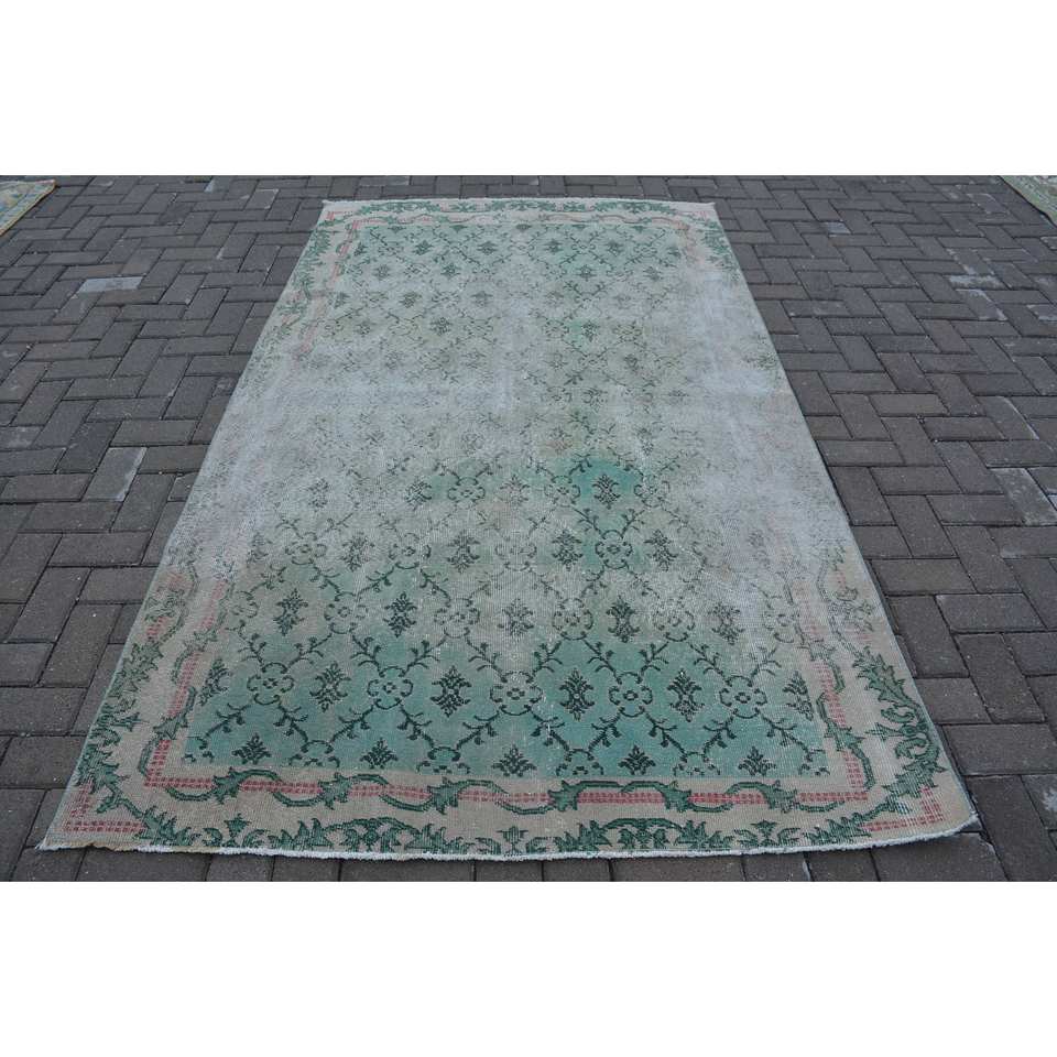 พรมตุรกีโบราณขนาด4.7x8ฟุตพรมขนแกะสีชมพูสีเขียวลายแอบสแตรกต์สำหรับวัยรุ่นพรมปูพื้นห้องยางพาราด้านหลังทรงสี่เหลี่ยมผืนผ้า