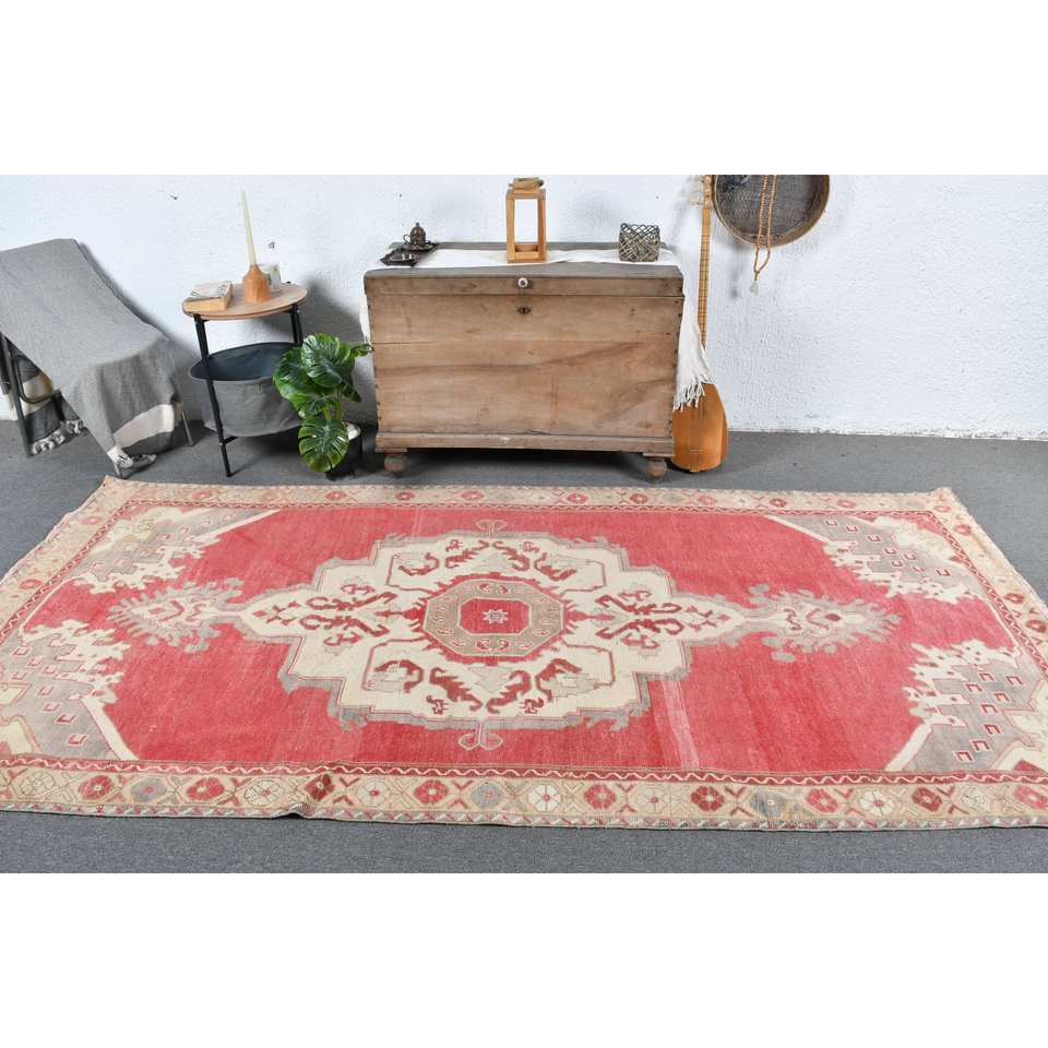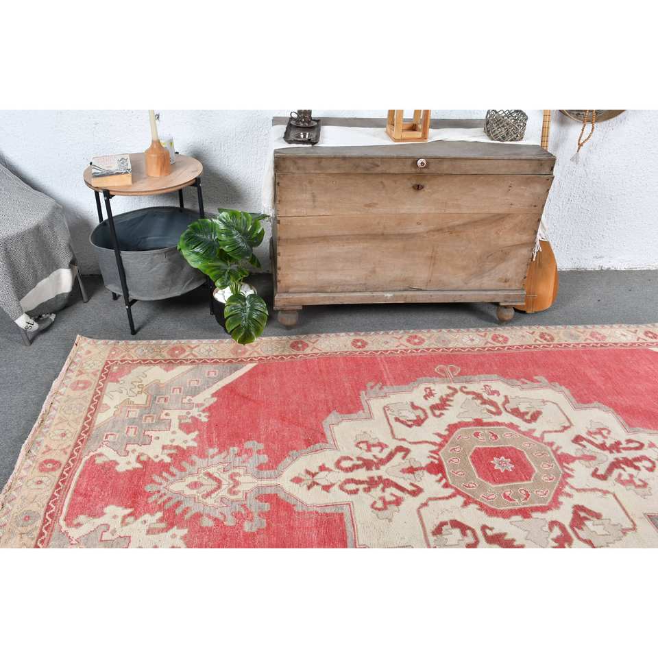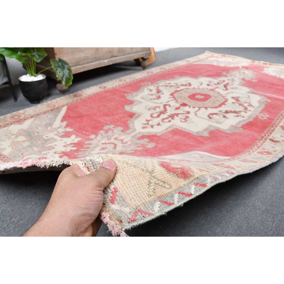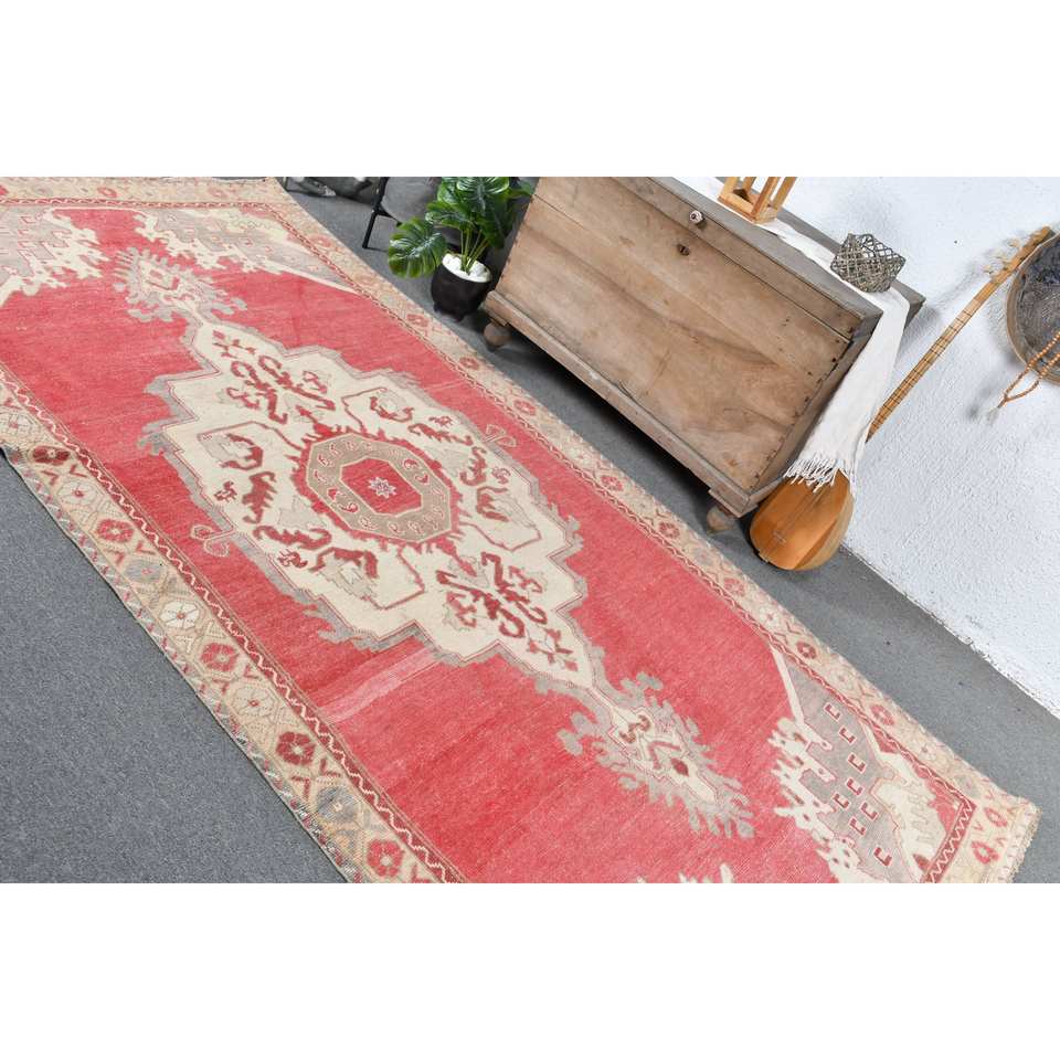 พรมสไตล์วินเทจขนแกะสีเบจสีแดงขนาด4.8x10ฟุตดีไซน์แบบเย็บติดโถงทางเดินทรงสี่เหลี่ยมผืนผ้าสำหรับห้องข้างเตียง