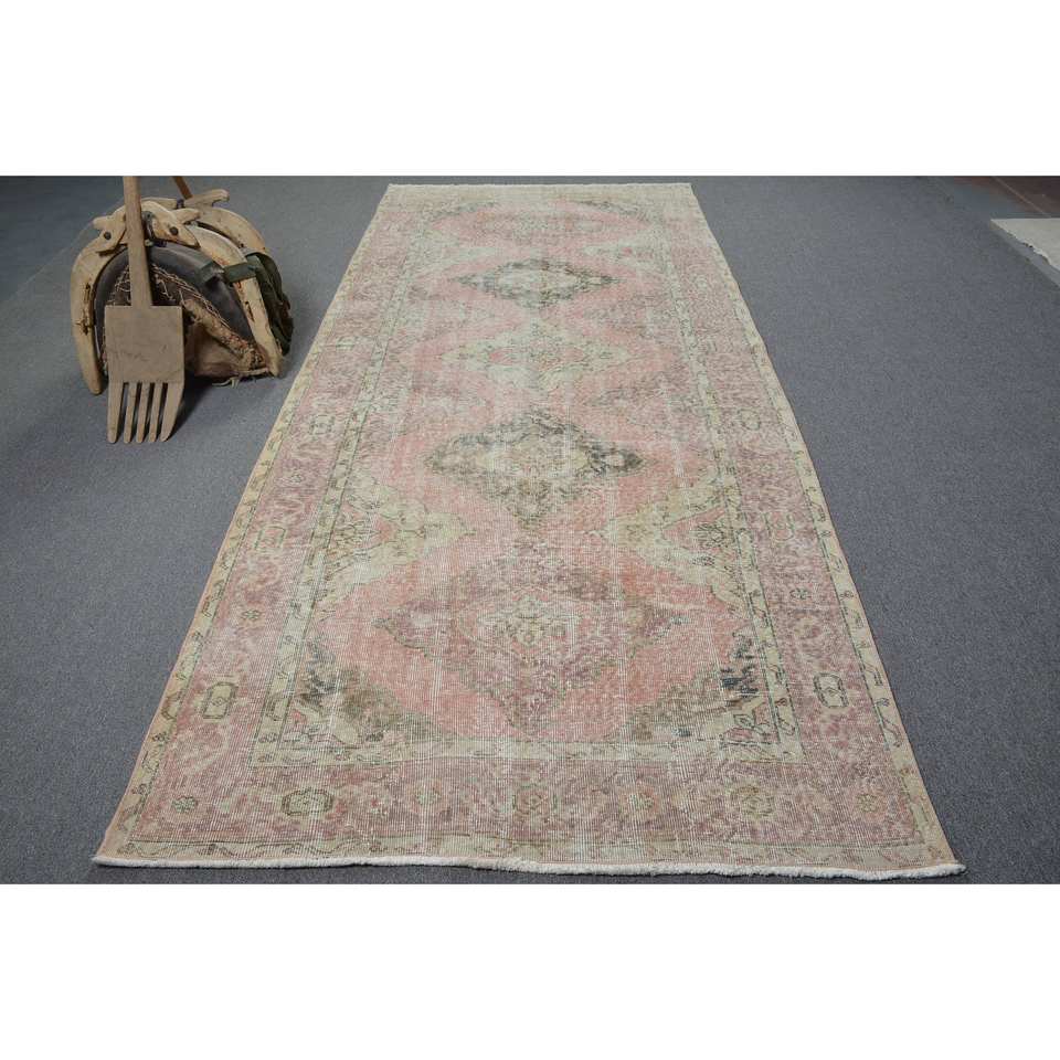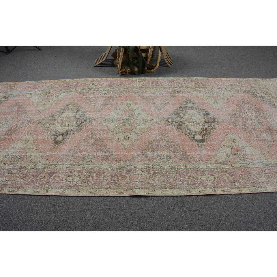 พรมสไตล์ตุรกีโบราณ4.8x10.9ft การออกแบบงานปะต่อสีชมพูสีเขียววัสดุขนสัตว์แบบถักแบบแบนเรียบลาเท็กซ์สำหรับตกแต่งห้องนั่งเล่น