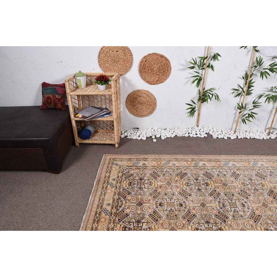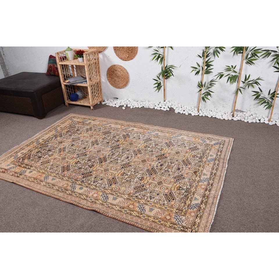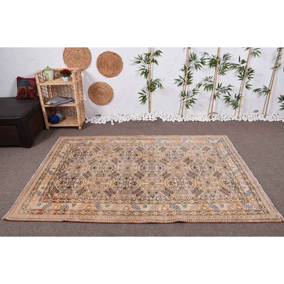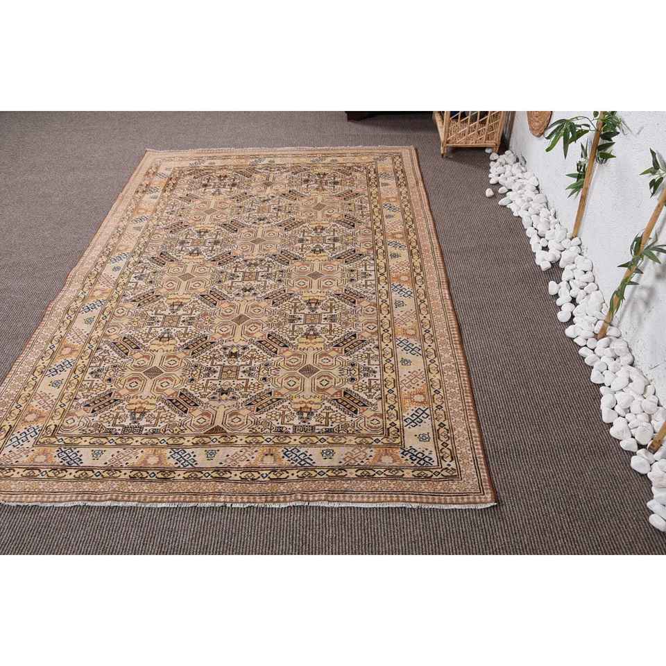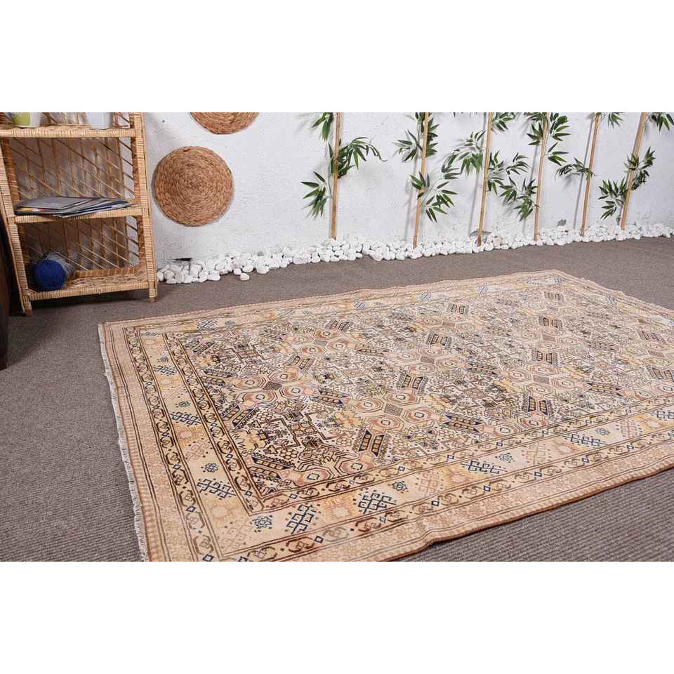 Vintage Turkish Rug, 4,8x7,2 ft Rug, Beige Blue Ikat Rug