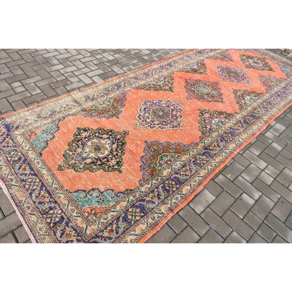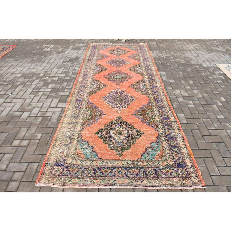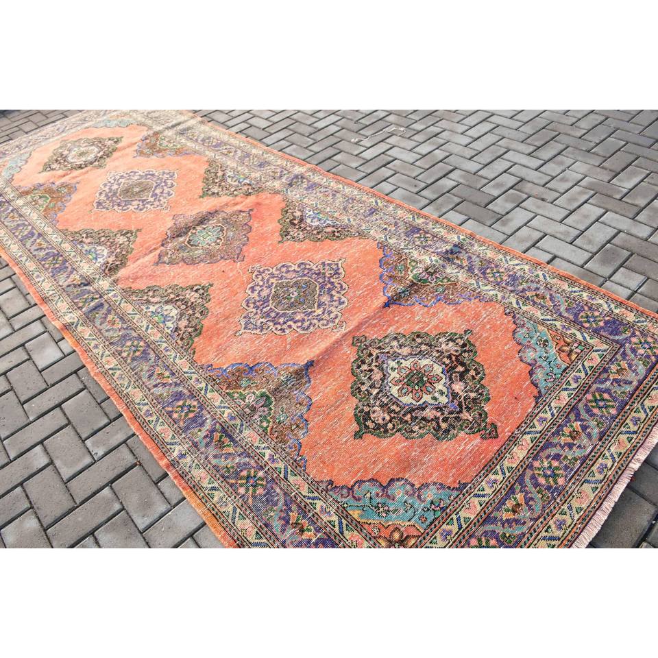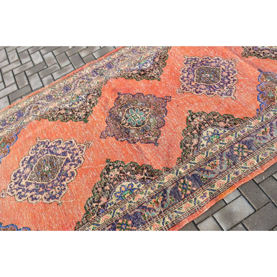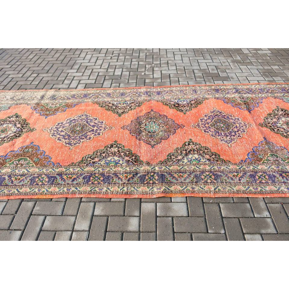 พรมตุรกีโบราณ ขนาด 4.9x12.8 ฟุต พรมลายดอกไม้สีแดงทำจากขนสัตว์