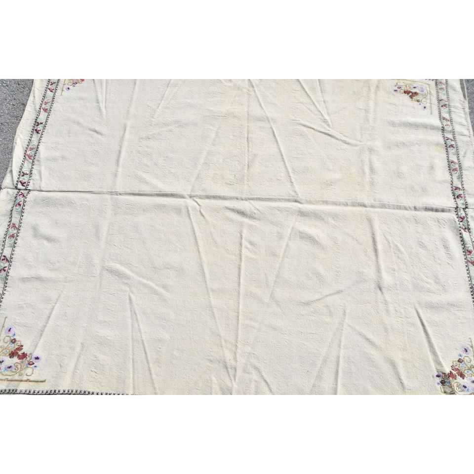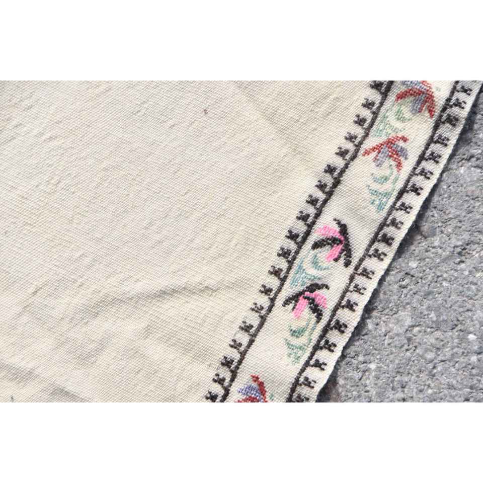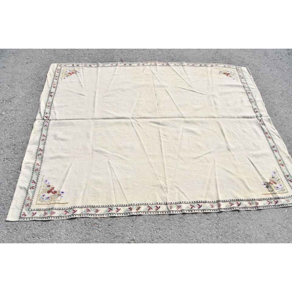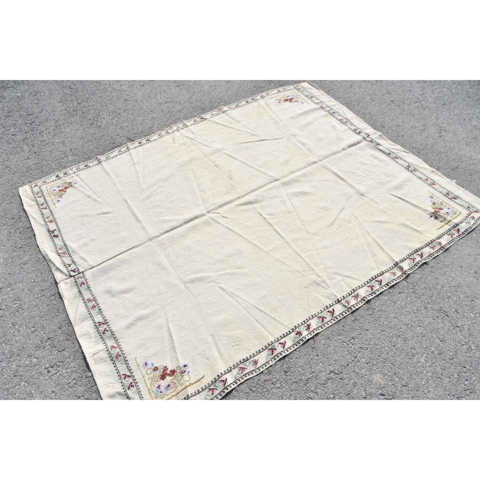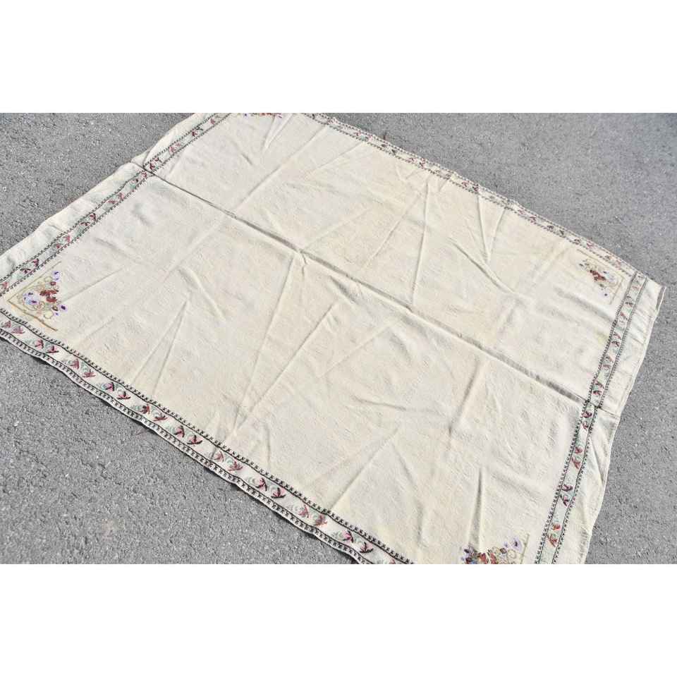พรมตุรกีโบราณ ขนาด 5.1x6.1 ฟุต พรมขนสัตว์โมร็อกโกสีขาวแดง