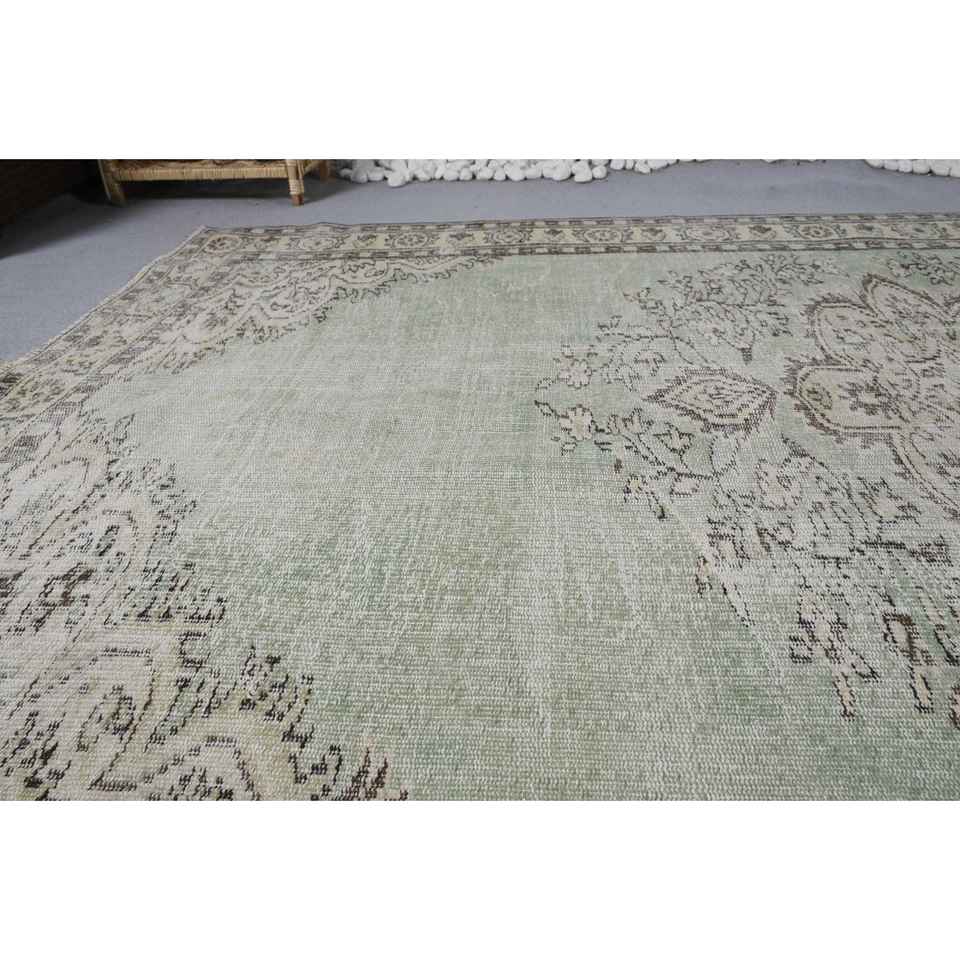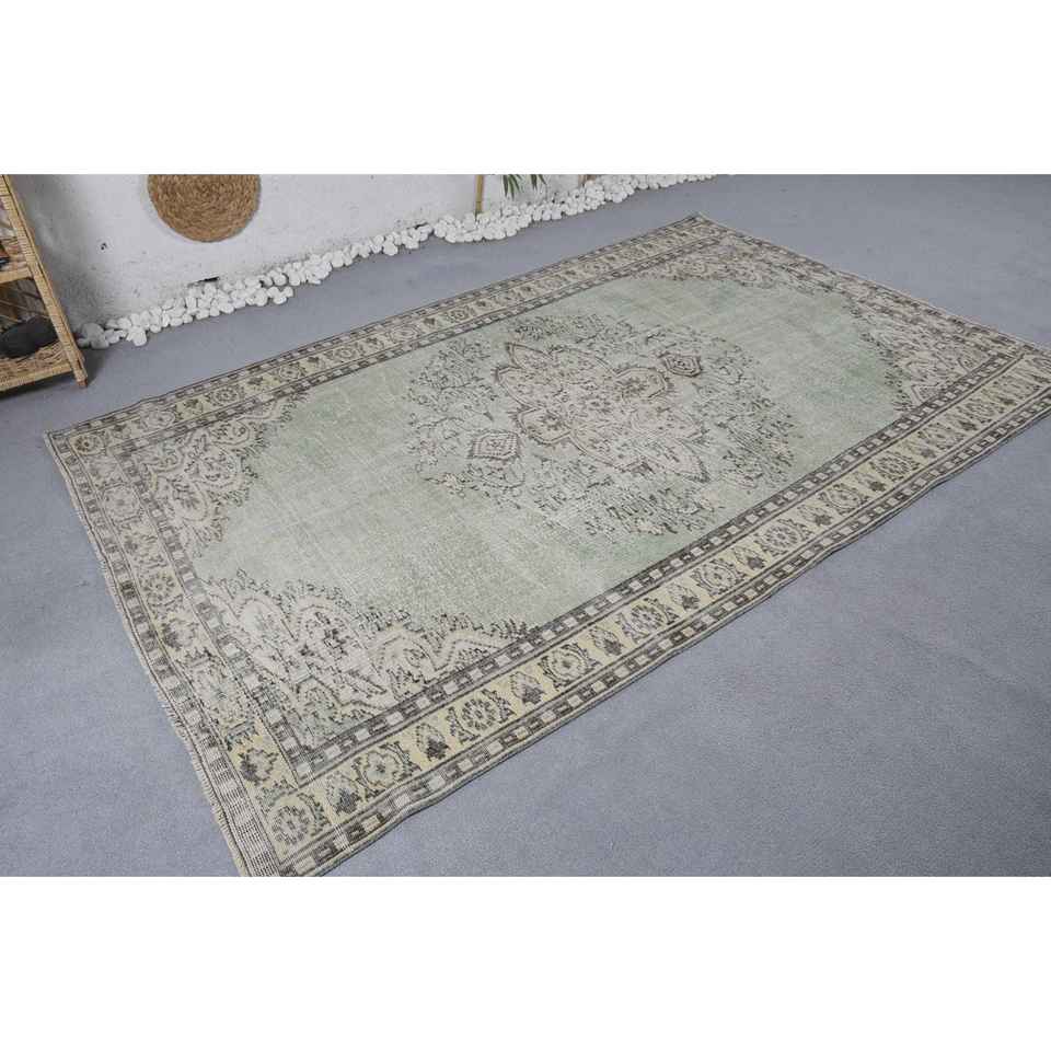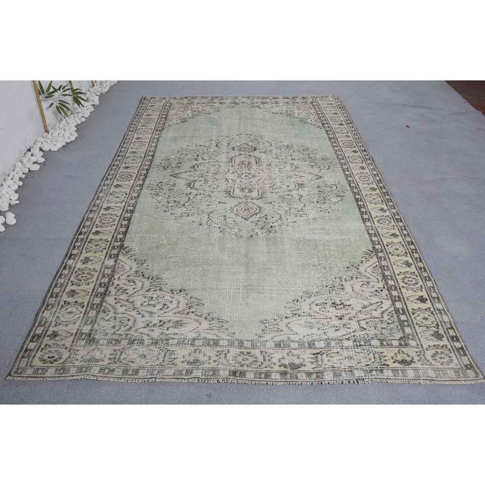 พรมตุรกีโบราณ5.3 x 8.4ft สีเขียวเบจผ้าขนสัตว์แบบเย็บปะติดปะต่อออกแบบยางสำหรับนั่งเล่นข้างเตียงห้องโถงสี่เหลี่ยม Tabriz