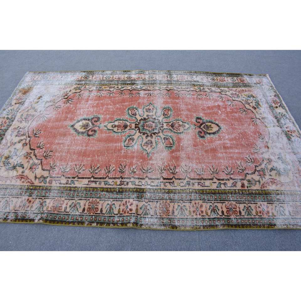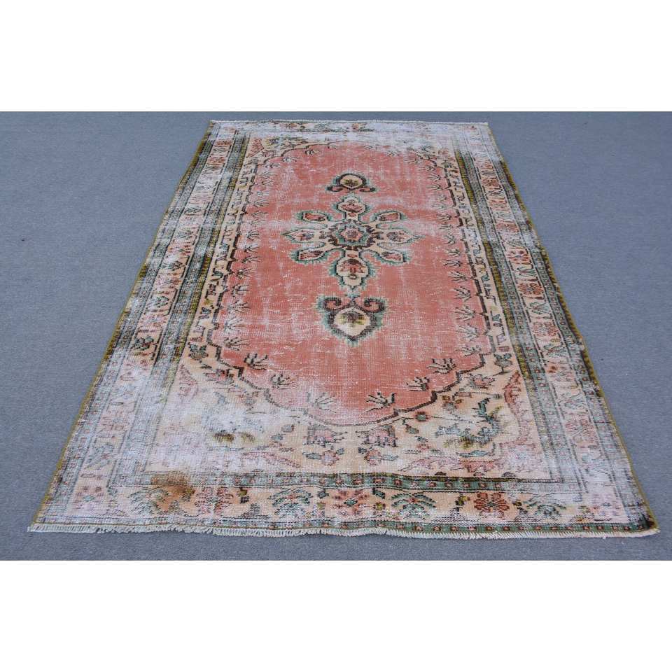 พรมตุรกีวินเทจขนาด5.3x8.2ฟุตพรมผ้าขนแกะดีไซน์สีเบจสีส้มงานเย็บปะติดปะต่อกันทำจากวัสดุขนสัตว์แผ่นรองหลังสี่เหลี่ยมผืนผ้าขนาดใหญ่สำหรับห้องใหม่