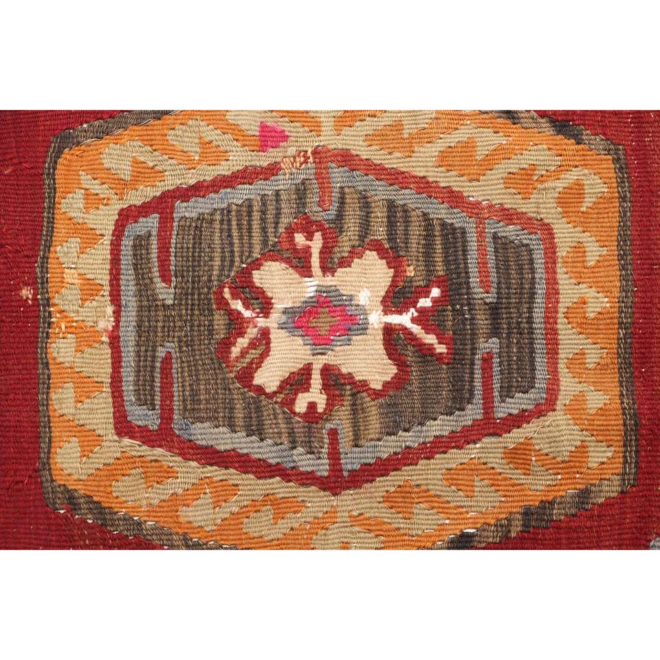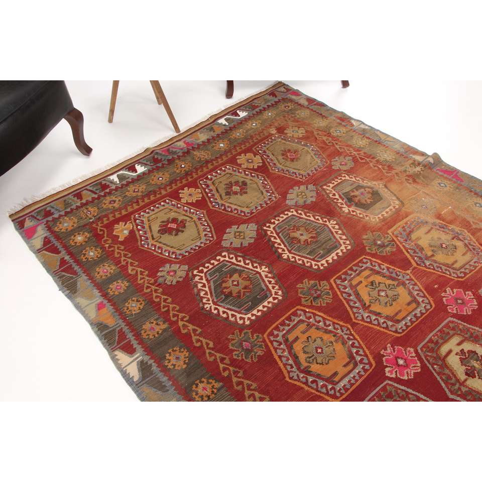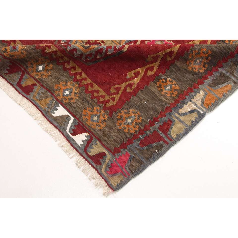 พรมขนสัตว์ตุรกีวินเทจ ขนาด 5.3x12.7 ฟุต ลายปะติดปะต่อ ดีไซน์ลายต้นไม้และพืชสีน้ำตาลแดง พร้อมแผ่นรองยางลาเท็กซ์