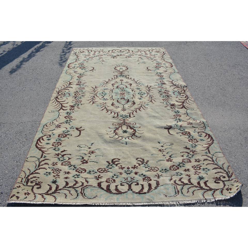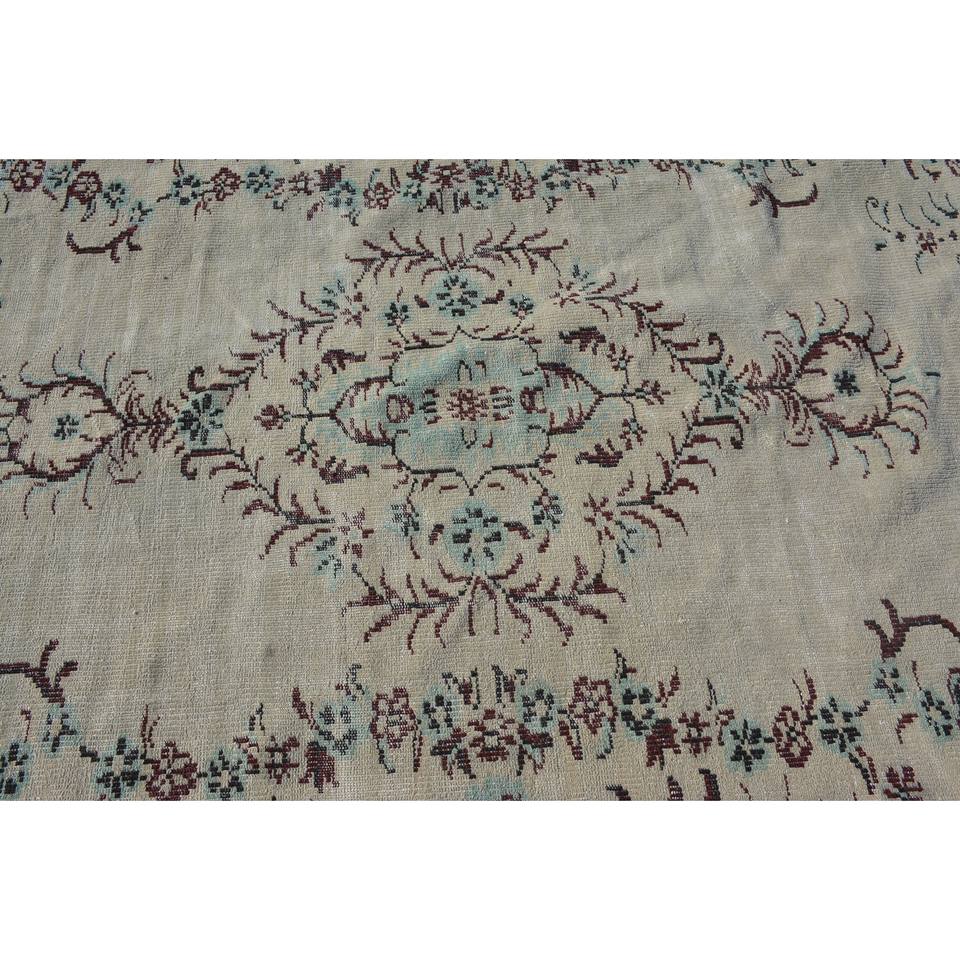 พรมตุรกีวินเทจขนแกะสีเบจ9.3ft 5.4 X แบบถักทอแบบเรียบสำหรับตกแต่งห้องนั่งเล่นโถงทางเดินด้วยลาเท็กซ์ด้านหลัง