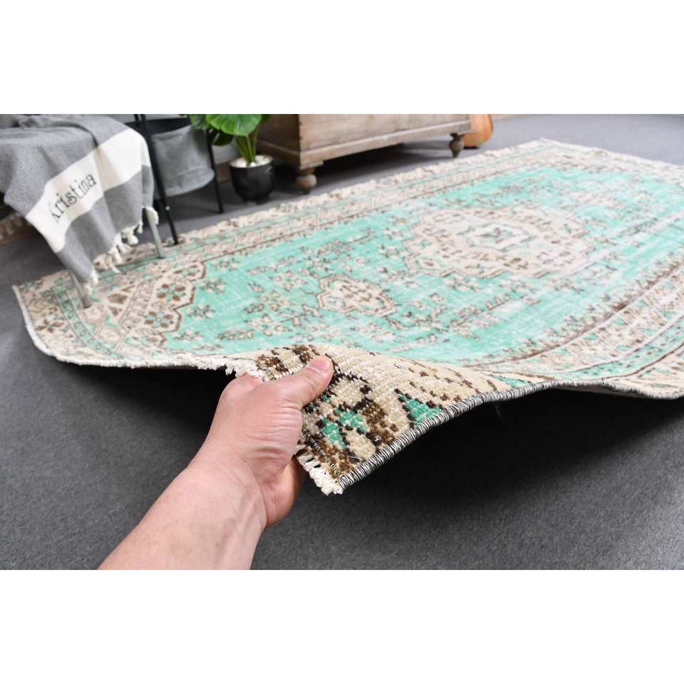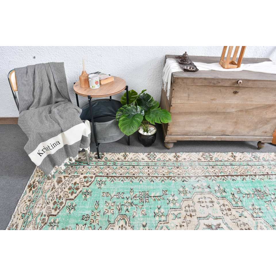 พรมตุรกีวินเทจสีเขียว9ft X 5.5 x สานเรียบลายปะติดพื้นที่ขนาดใหญ่สำหรับตกแต่งห้องนั่งเล่นผ้าขนสัตว์ลาเท็กซ์