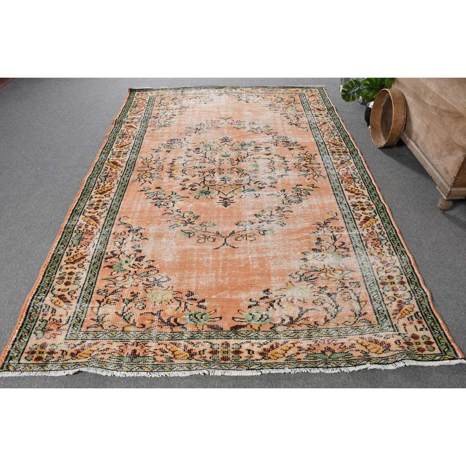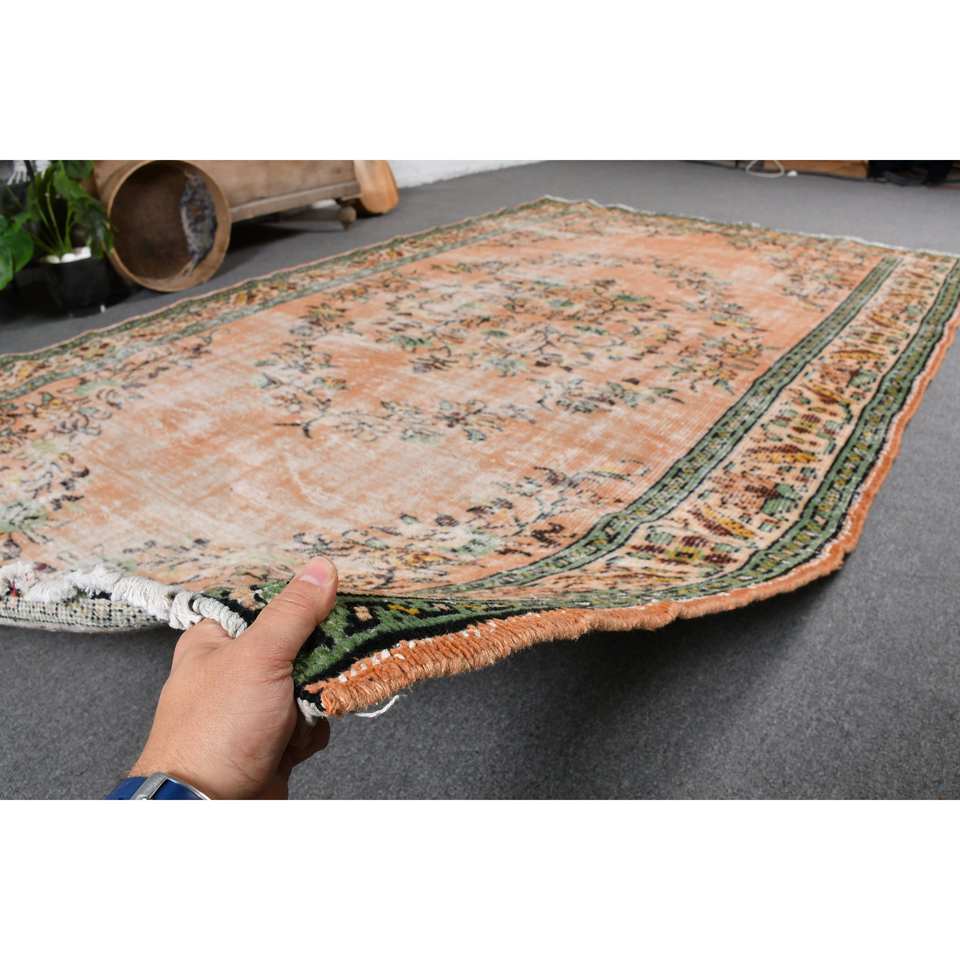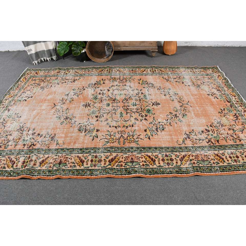 พรมแบบตุรกีโบราณ5.8 X 9.2ft ผ้าถักสีส้มและสีเขียวใช้สำหรับตกแต่งห้องนั่งเล่น