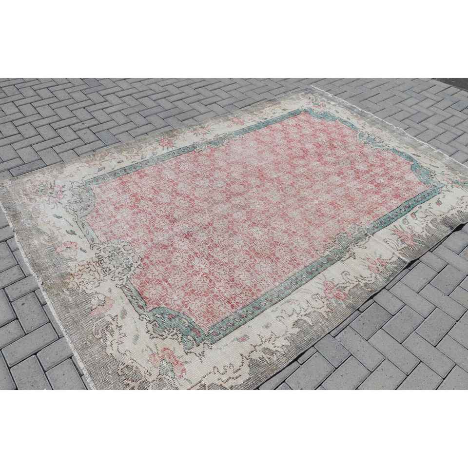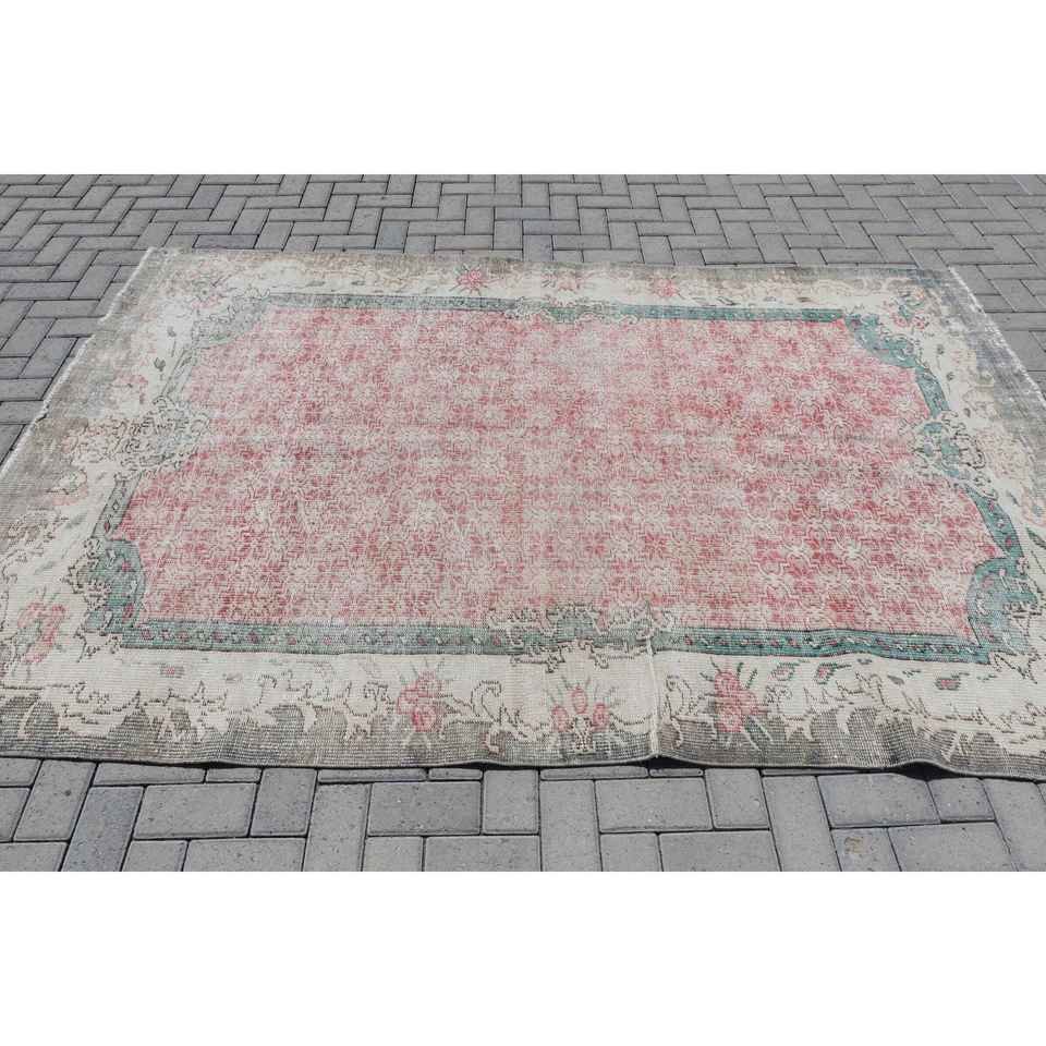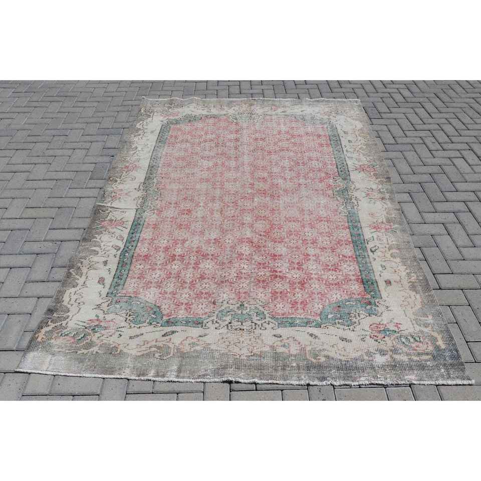 พรมตุรกีวินเทจ ขนาดใหญ่ 5.9x8.8 ฟุต พรมขนสัตว์สีแดงน้ำเงินลายอิคัต