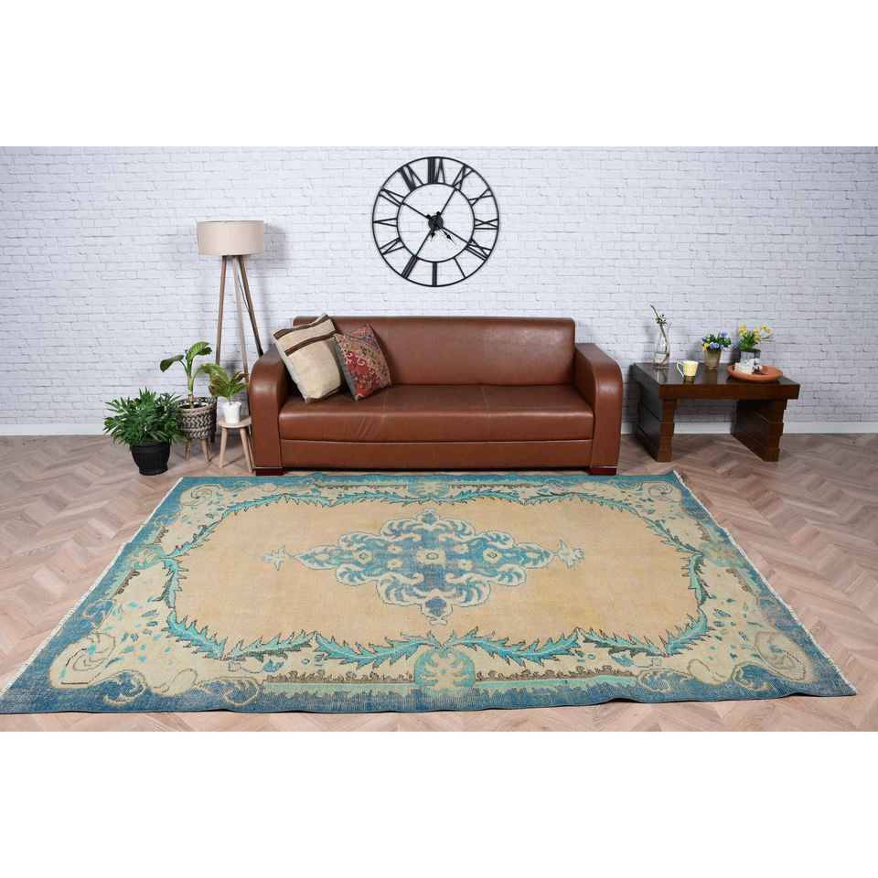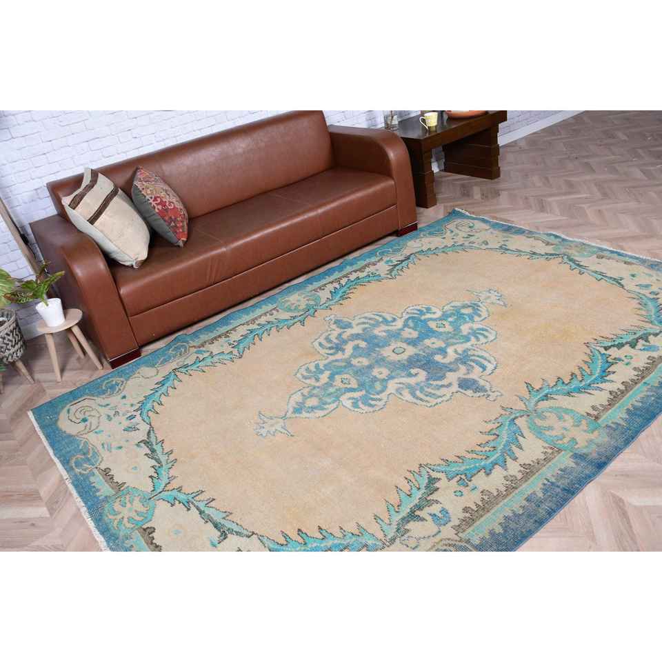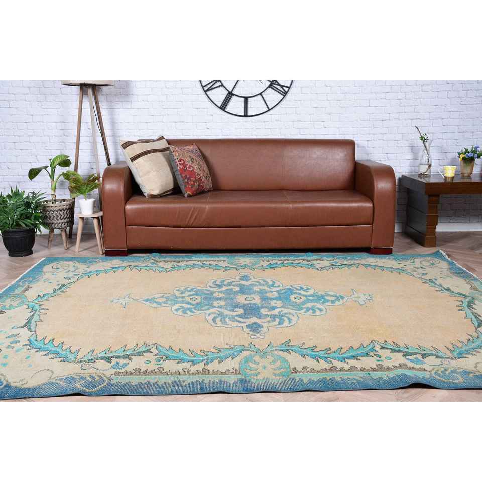 พรมตุรกีวินเทจ ขนาด 6.3x8.7 ฟุต (192x266 ซม.) พรมลายปะติดสีน้ำเงิน
