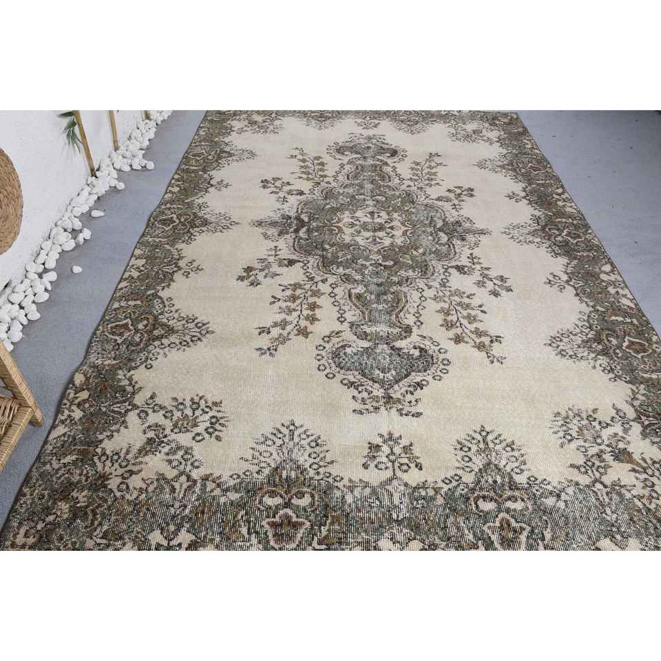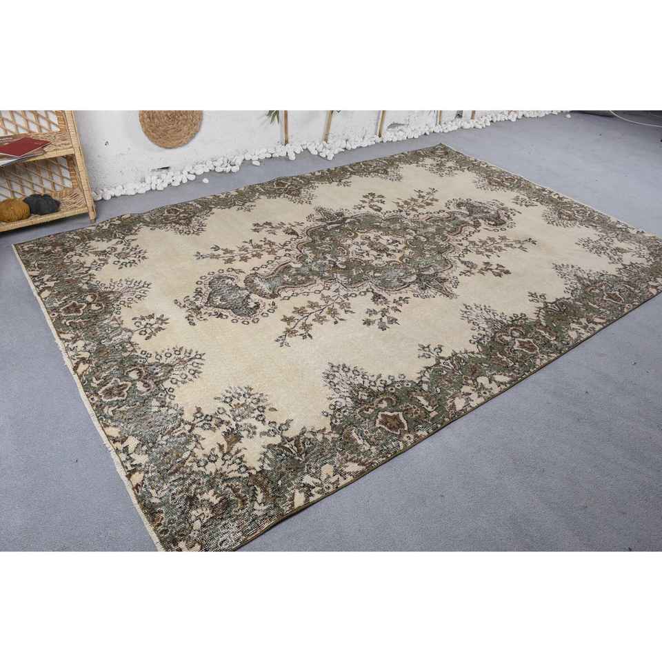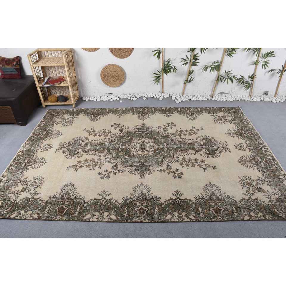 พรมตุรกีวินเทจ ขนาด 6.3x9.3 ฟุต (192x283 ซม.) ลายตารางสีเบจ